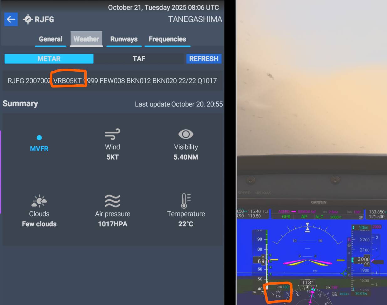 I took off and, while in cruise, I used the G1000 to tune in airports along the way and listen to their ATIS to get weather updates. Not one airport from Departure to Destination was reporting winds above 6kts. As I started my descent, I hit Refresh on the METAR for RJFG just to be extra sure this landing would be safe. I updated my spreadsheet with the new METAR info. All was good and I was monitoring winds on the way down.