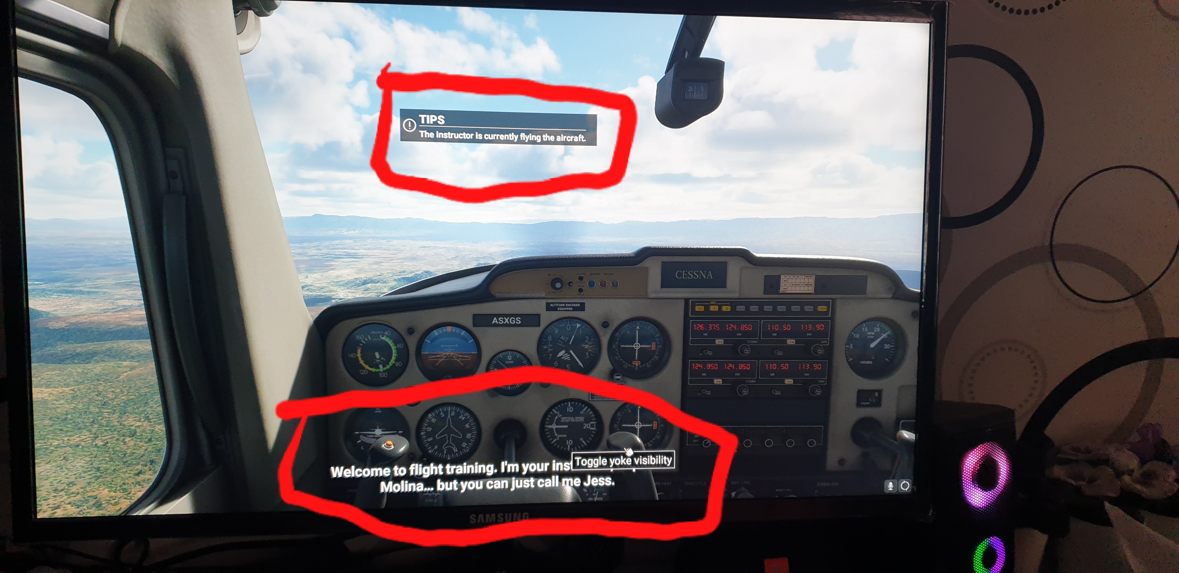 flying training lesson no.1This tutorial flight training is error bugged to me,no voice instructure but only hear engine sound aircraft