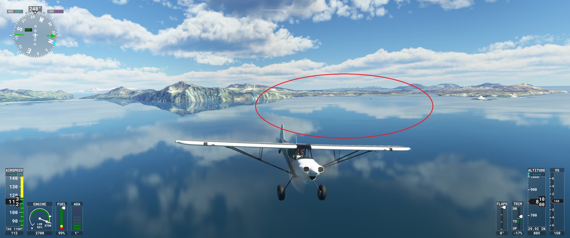 - Under wing. From this angle the water looks much closer to yours, however you can see how bad the wing reflection is still.
