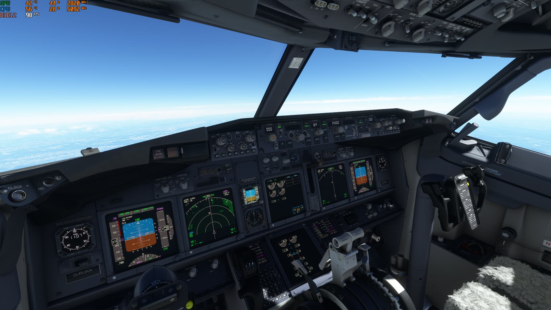I always fly in 737-800 from PMDG which is very well optimized and my fps inside the cockpit are +60, sometimes are in 90, and during flight i always have +100 fps , Frame Generation is a very good feature and thank you for that ![]()