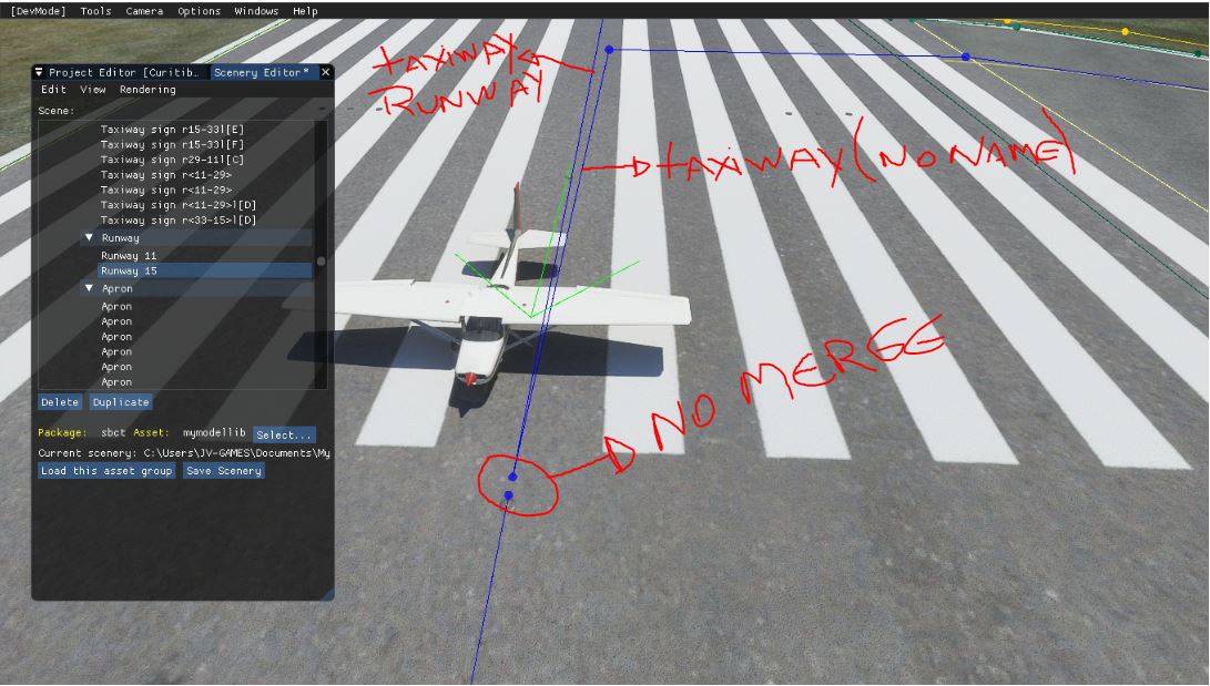 At one point I did not merge the points because the AI’s planes did not stop at the right takeoff point and continued to taxi back halfway up the runway.