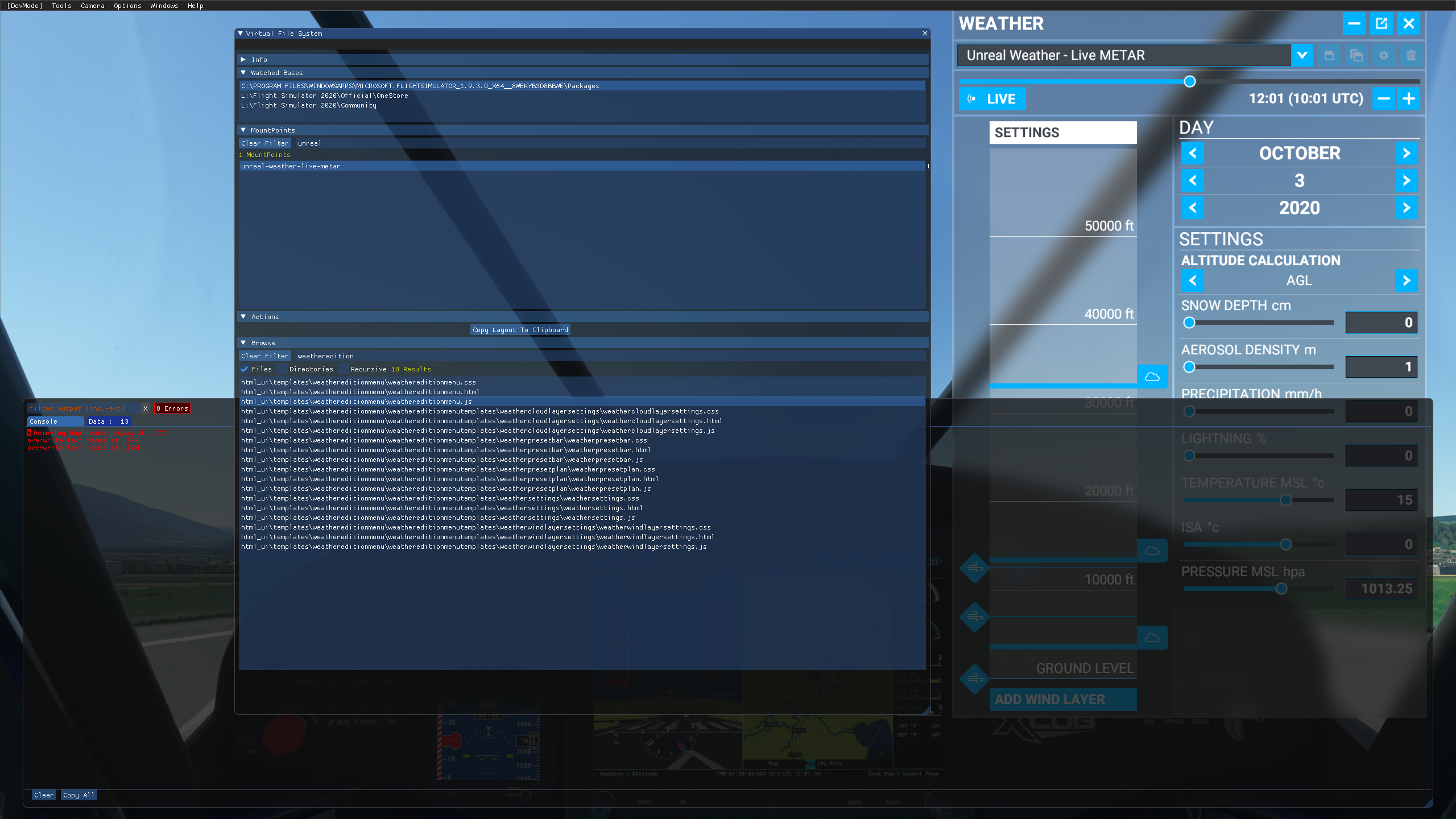 1st fly: MFS live weather work, and unreal weather work