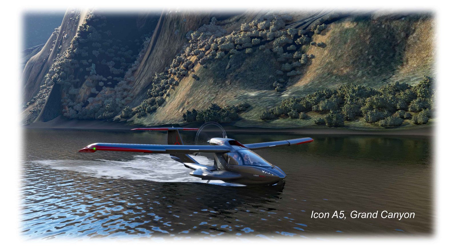 Starting with takeoff, in-game it feels like the seaplane skates across a flat slab of asphalt rather than being on the water - the surface seems impenetrable and the aircraft’s pitch attitude can’t be changed. In real life, takeoffs are started with the stick full-back and the nose immediately comes up to a high pitch upon application of power (think cowl on the horizon, if the cowl is normally well below it from the pilot’s perspective). A moment later, as the floats are ready to come up on step, the nose rises farther (the ‘second rise’). From here for a normal takeoff the pilot releases back pressure to keep a slightly nose-up attitude. There is no rotation like in a landplane, the seaplane flies itself off the water in this attitude. Long story short: managing the pitch is really important. In the sim, because pitch angle can’t really be changed, a real-world takeoff can’t be replicated. With some back pressure, the seaplane seems to rotate and jump off the water all at once, which is unrealistic.