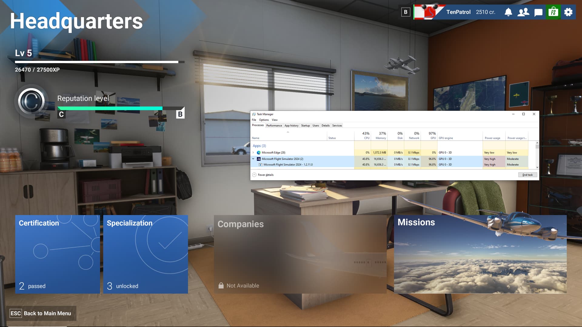 In FS2024 I have about 60% usage in the top and free flight menu, which I find quite OK. But >90% in the career menu, not acceptable.