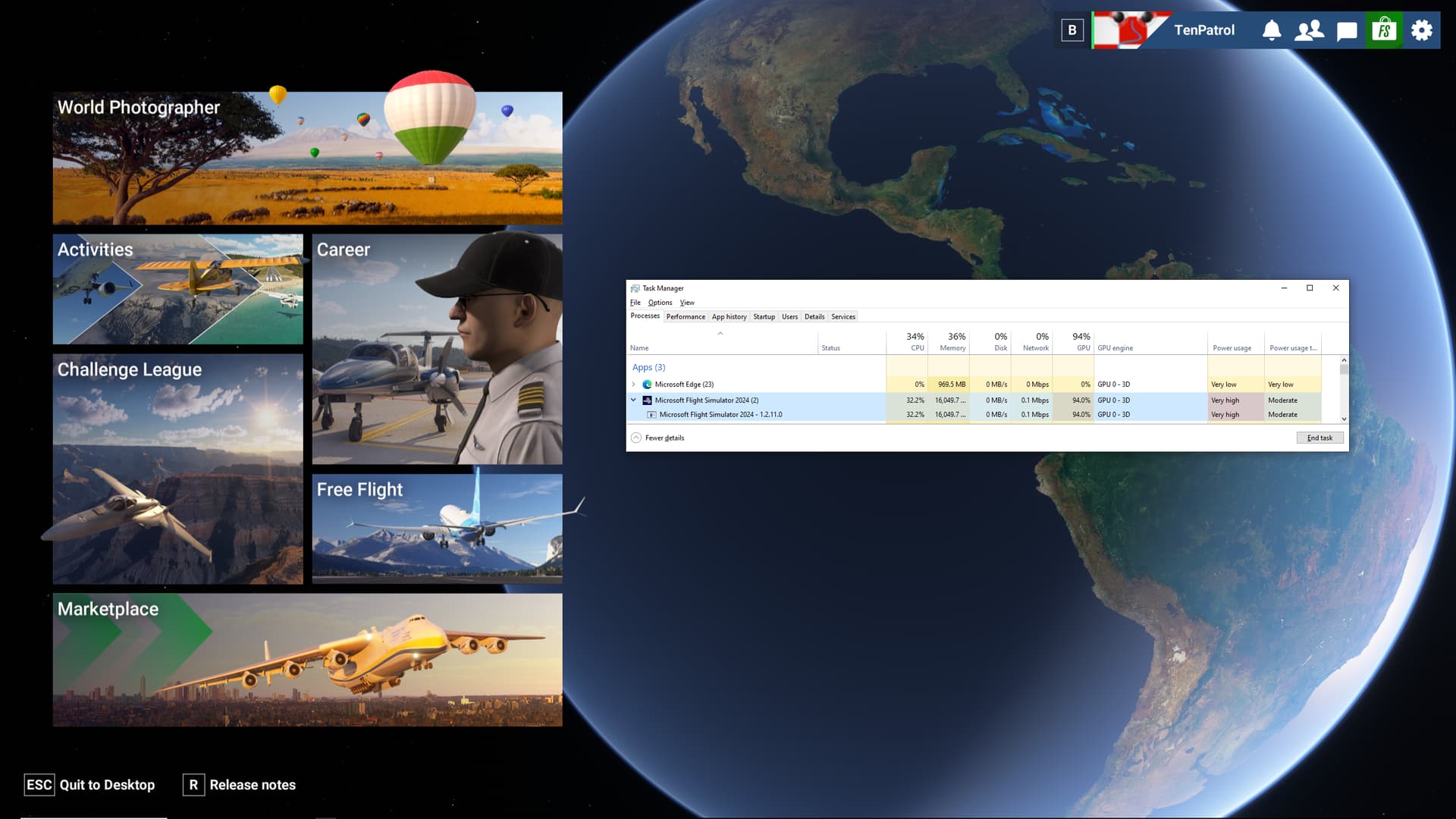 And the menu actually renders graphics all the time in MSFS 2024.