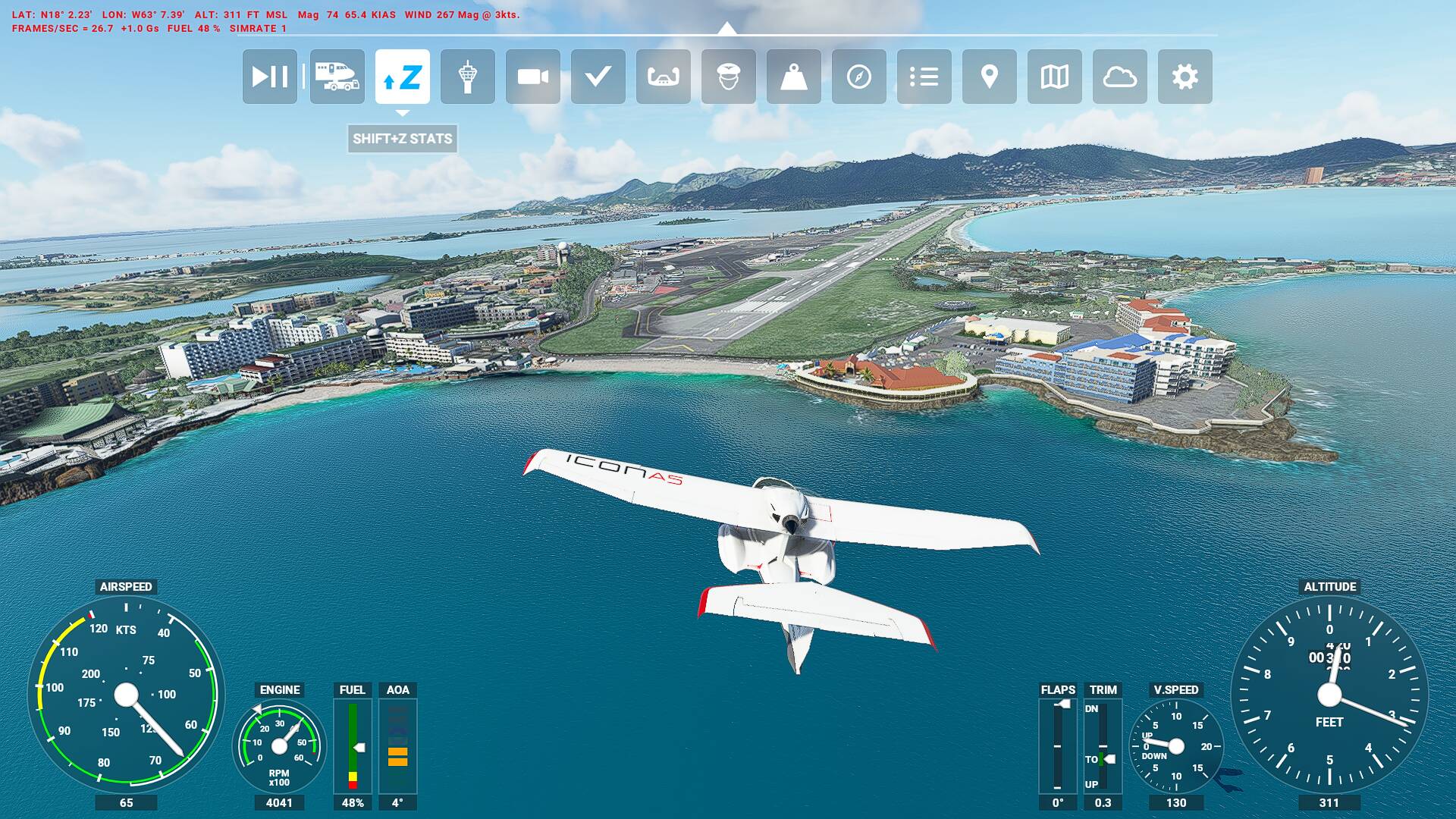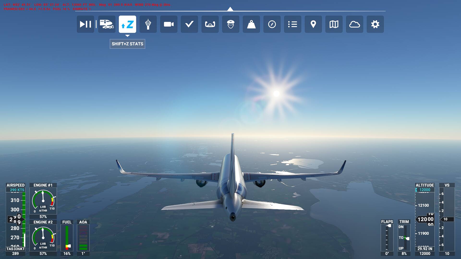“Shift+Z Stats” brings back the classic compact flight statistics know from FSX and earlier titles of Microsoft Flight Simulator.