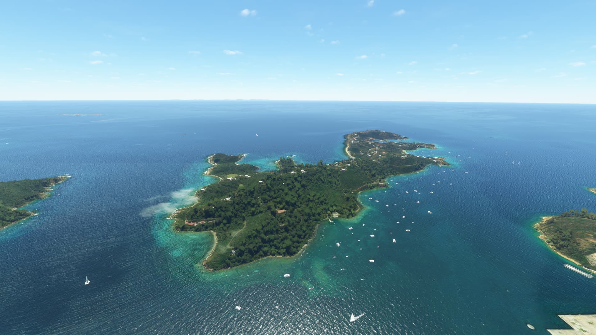 “Welcome to the US, British and Spanish Virgin Islands, an idyllic archipelago in the Caribbean Sea. Home to 8 airfields and 2 seaplane bases (not included), we have populated this beautiful chain of islands with nautical life. Take a flight over the recreated marinas and ports that skirt these islands together with typical sailboats, catamarans, motorboats and luxury yachts travelling the coast! A perfect starting point for your new seaplane…”