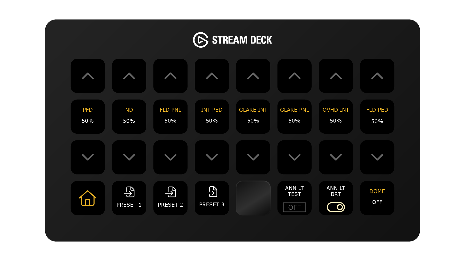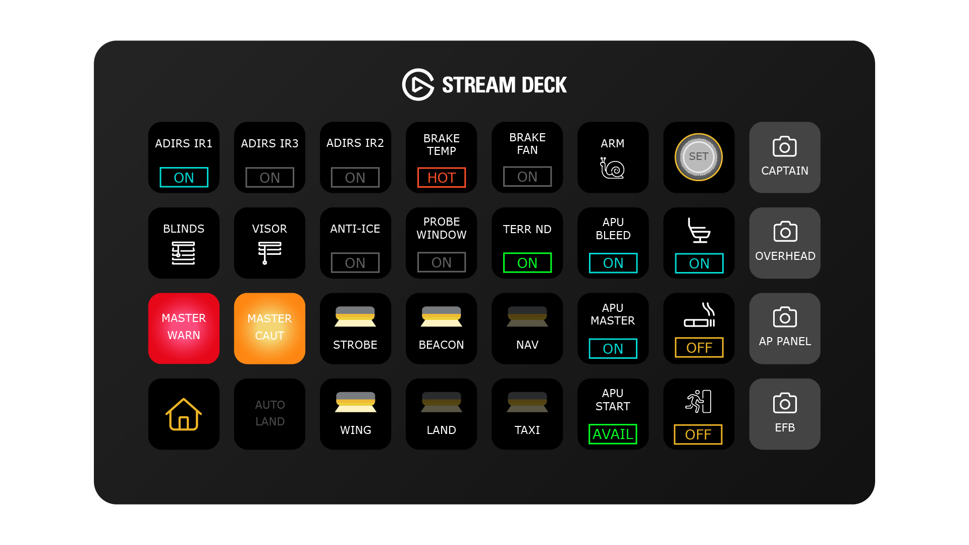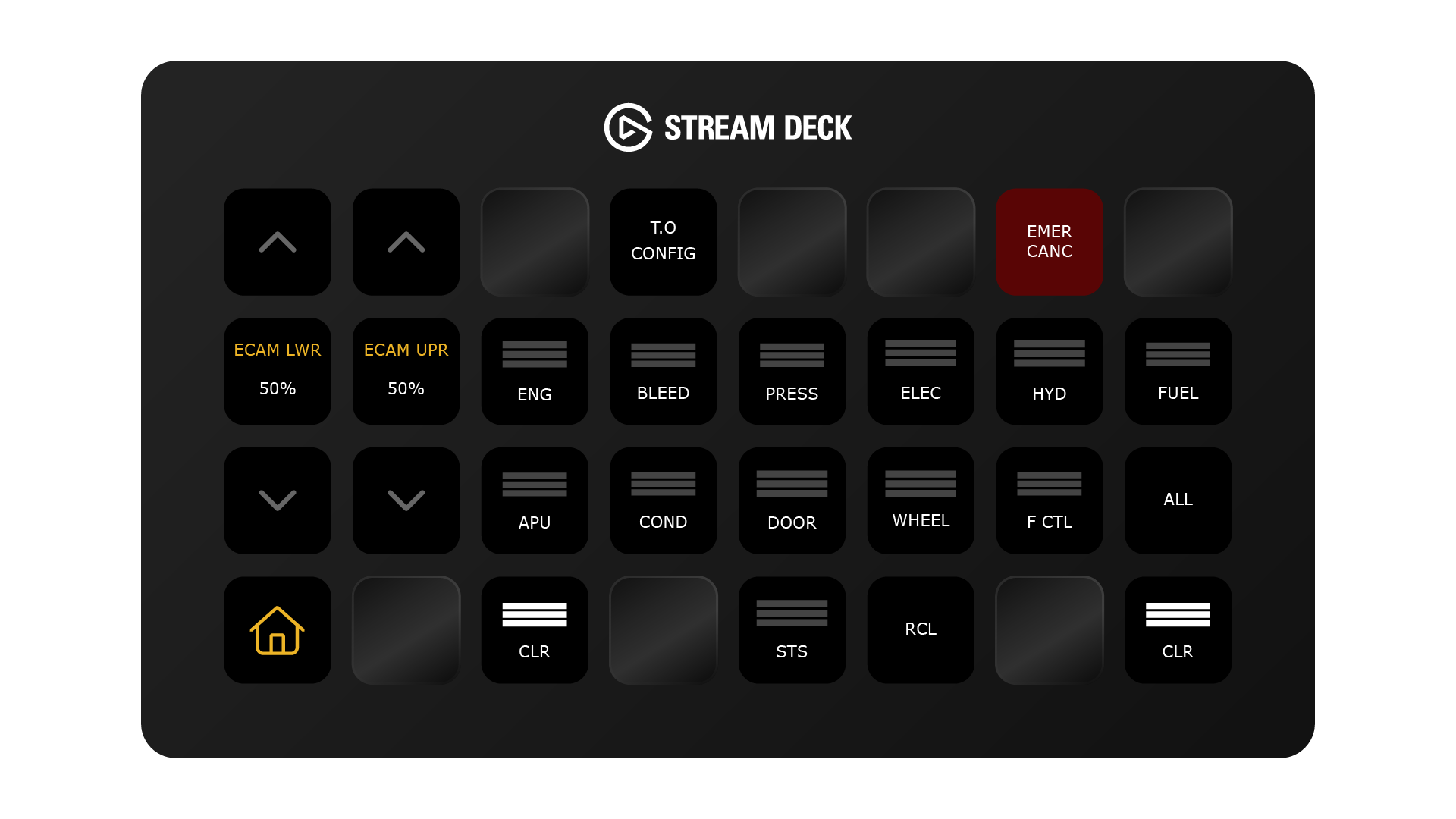 What’s Included? This item includes all 10 Stream Deck Profiles (Home, Main Panel, Overhead, Communications, WX/ATC & TCAS, Interior Lighting, ECAM, Fire, Autopilot & EFIS) that make up the Fenix Airbus A320 Series.