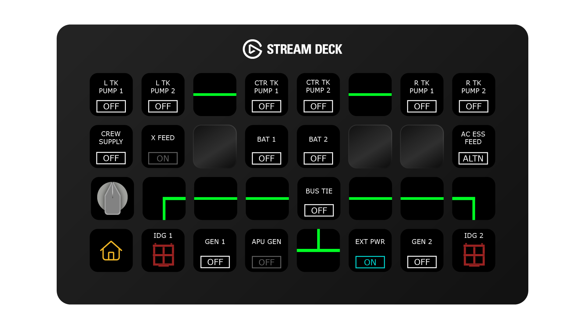Flight Panels are a collection of highly detailed and fully programmed Stream Deck Profiles for Microsoft Flight Simulator. Our Fenix A320 series features a dedicated home screen and 9 separate panels - Main/General, Overhead, ECAM, Radio/Communications, WX/ATC & TCAS, Fire, Interior Lighting, Autopilot & EFIS!