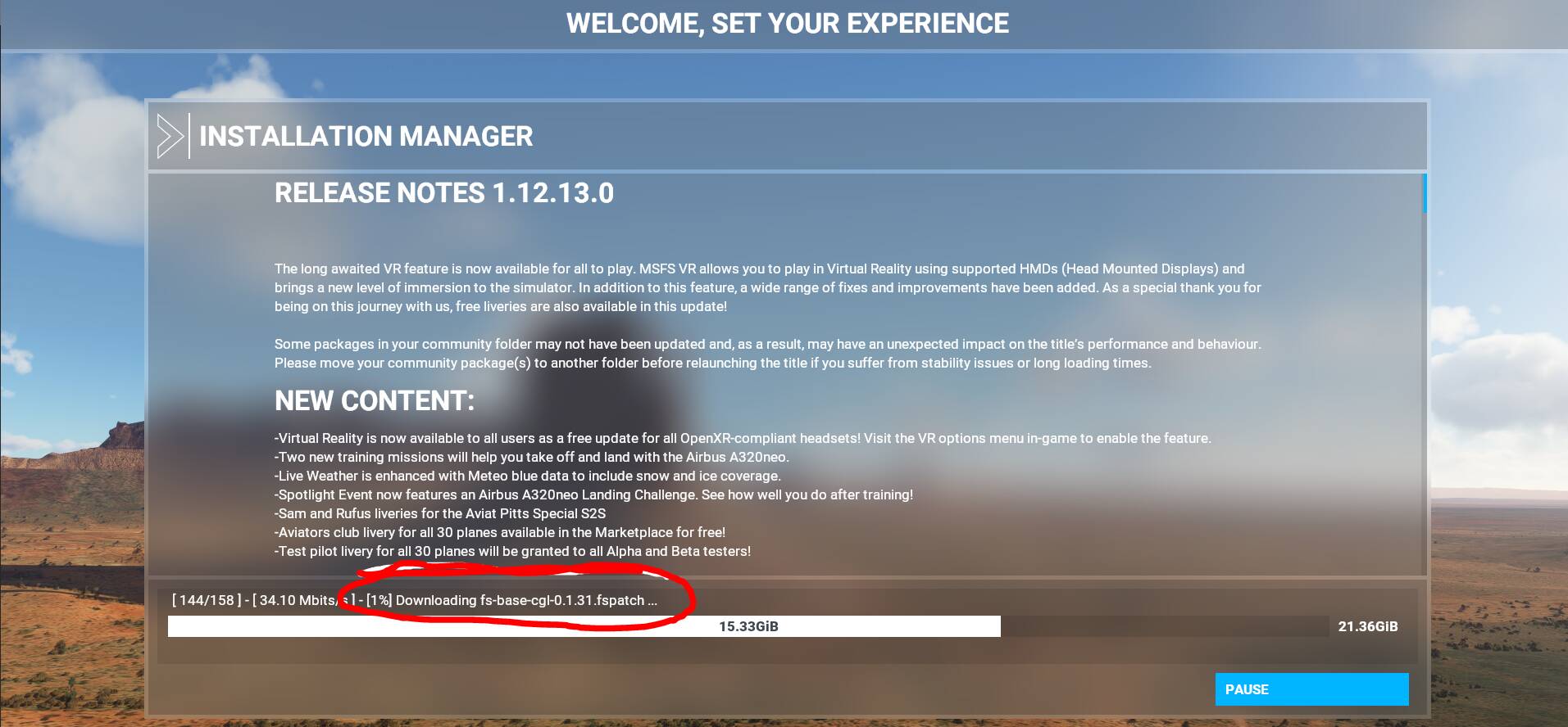 A few months ago an update came out that, when downloading, the progress will make it to some point, generally a large file such as pc-fs-base-bigfiles-01-101-fspackage, but then the update will restart and enter an indefinite loop. I have tried restarting it, uninstalling, reinstalling, deleting all local files, everything I can think of and I still cannot play the game months later. Looking online shows others having this issue and Microsoft basically ignoring them.