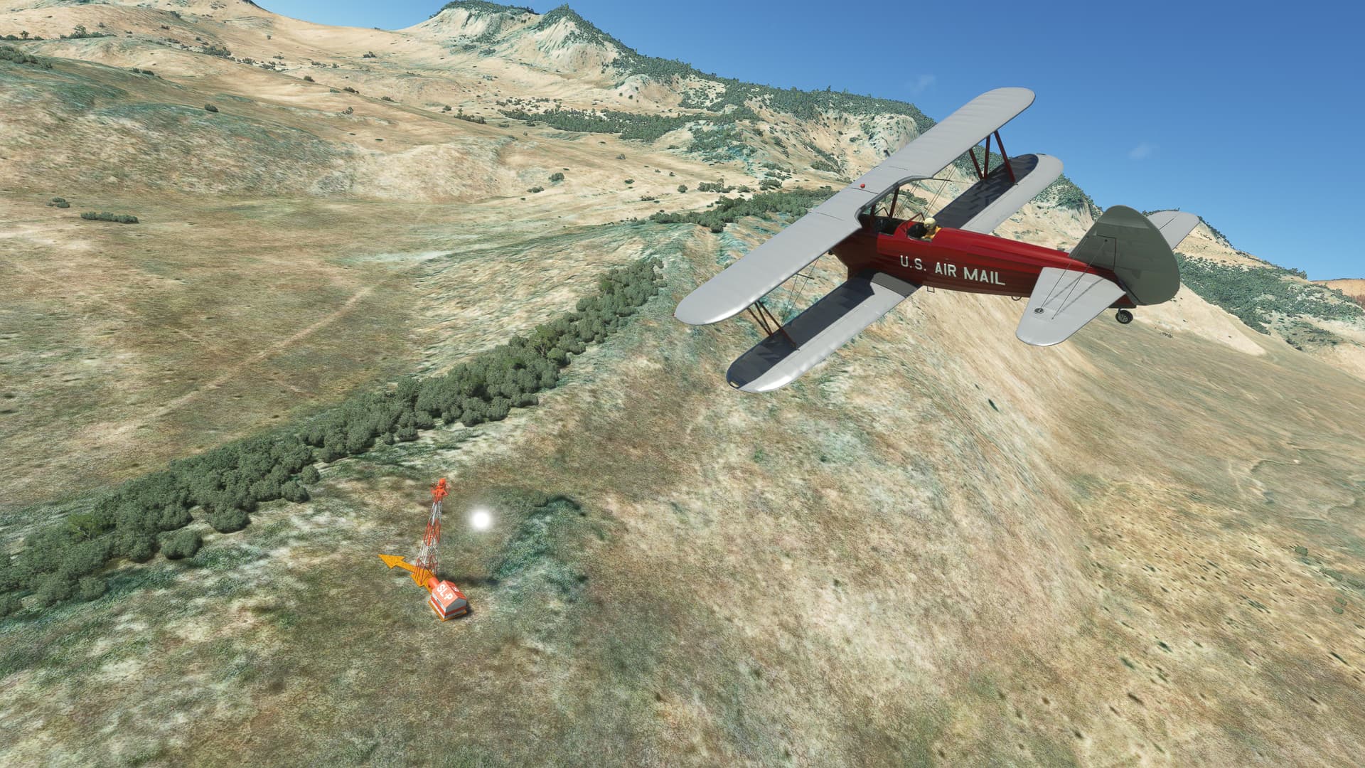 It took me a total of 2 hours to fly this small section of the route although I did pause quite a few times to take screenshots and also to consult the map which probably added a fair bit of time. Plus the Stearman isn’t the fastest bird but then again some of the early mail planes were even slower. And just like back then all this was flown without the aid of any autopilots or anything, just me and my stick and throttle. Luckily the Stearman trims out nicely so it wasn’t too tasking and it was quite a pleasant flight. I’ll carry on flying the rest of the route over the next week or so in 1-2 hour stages. Not the fastest of mail services but I’ll guarantee your mail will get to Pasco eventually