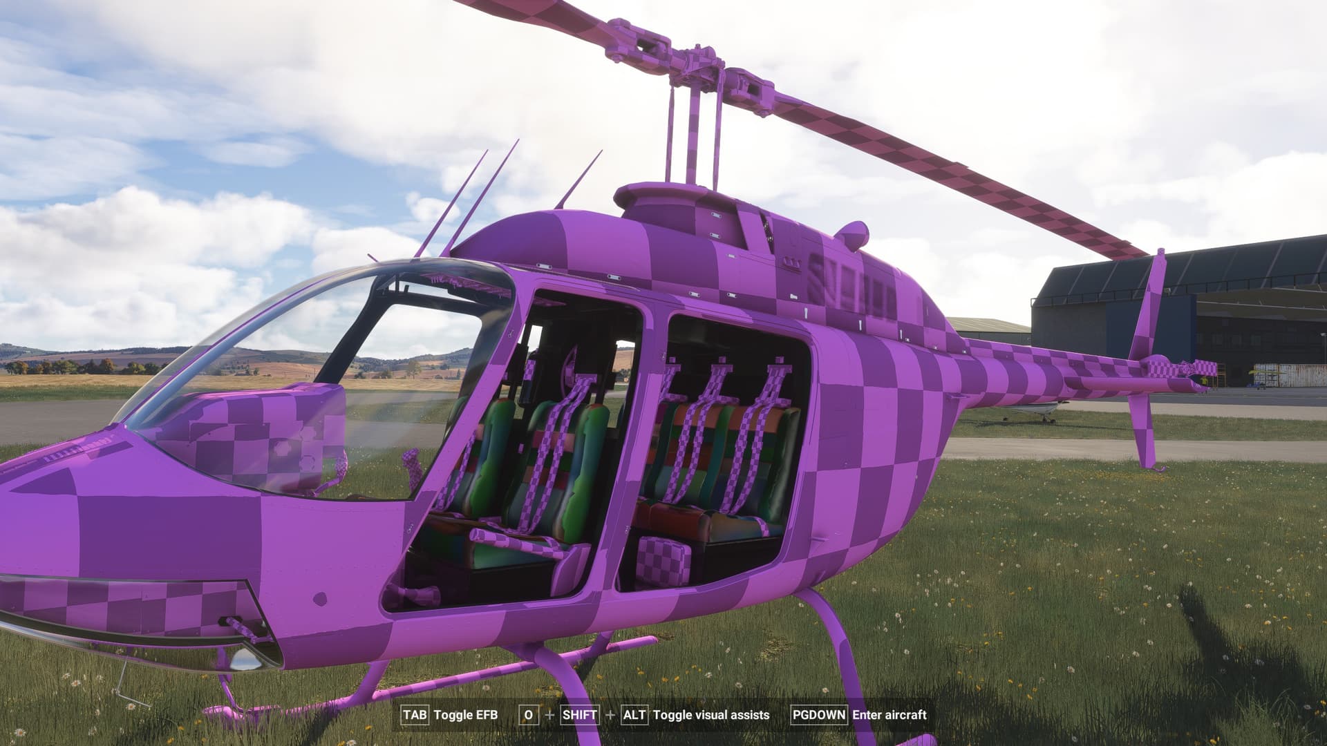 I had all four helicopters installed, and updated the installations this morning. The downloaded files were presumably missing the textures seen, or rather not seen, above.