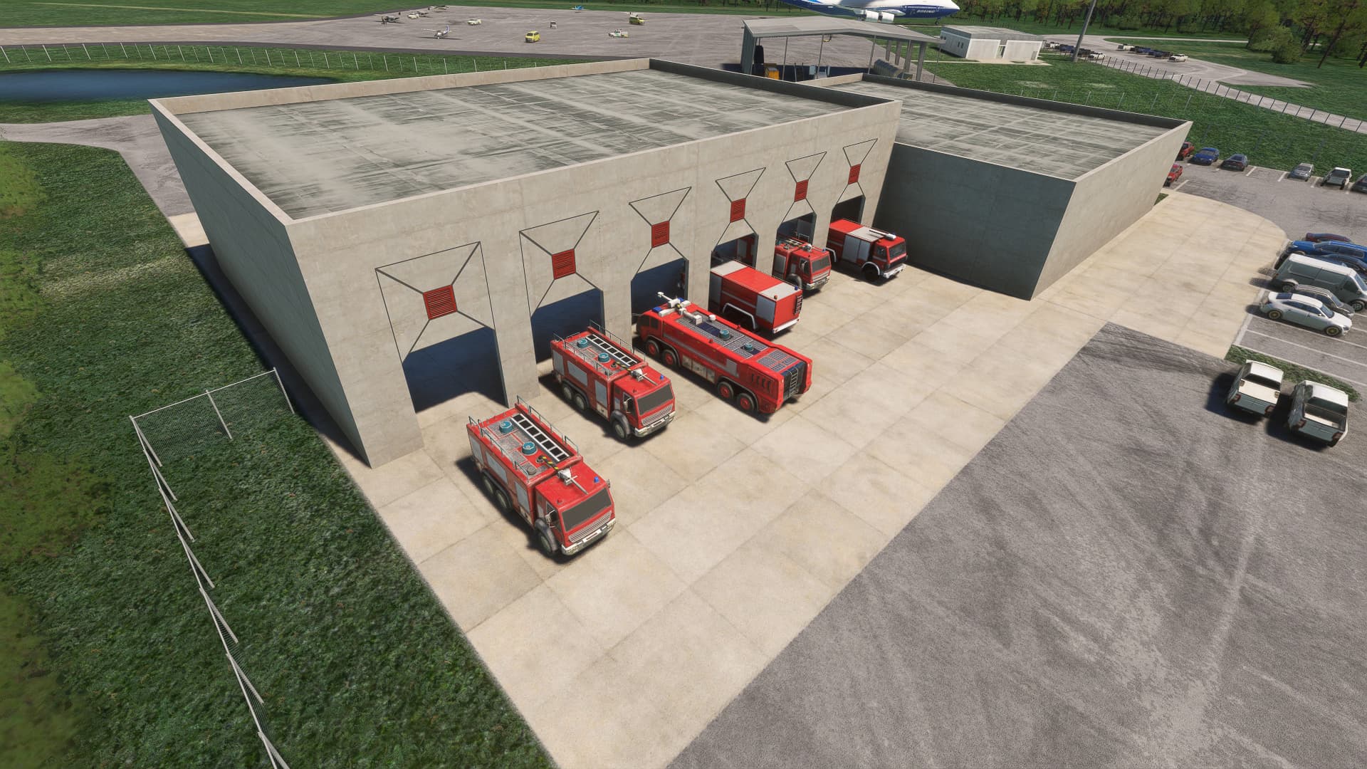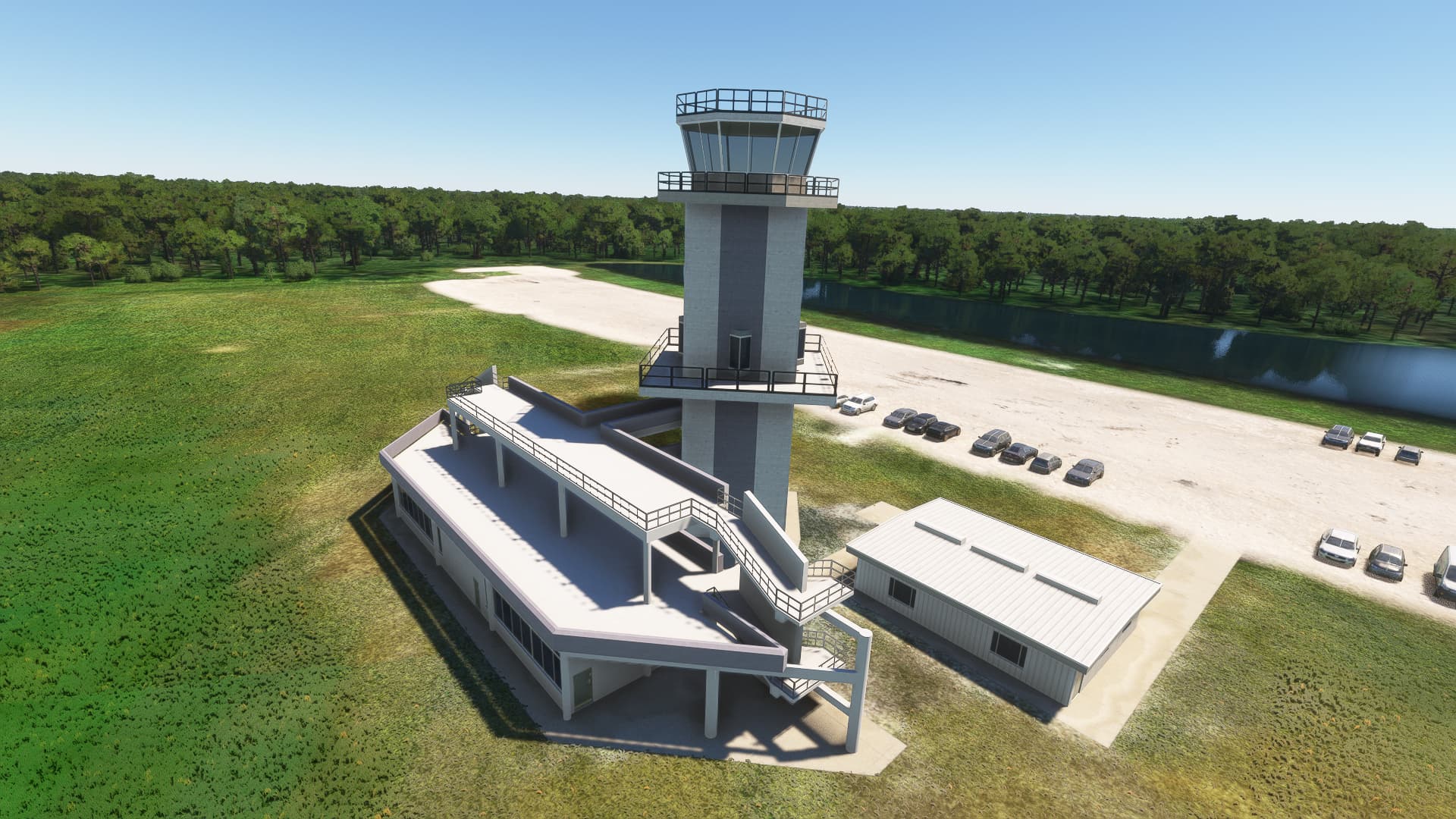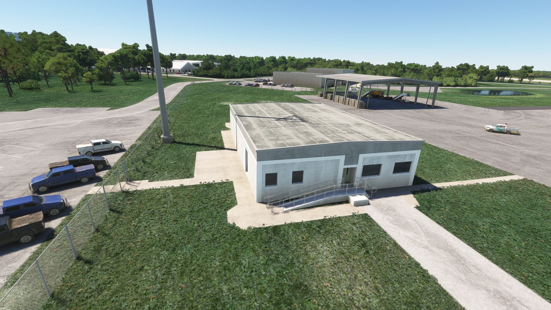 Here are a few quick screenshots of work in progress on the SLF (Shuttle Landing Facility, ICAO:KTTS) area. This in essence is a working airport, but, as always, we’ve upgraded all the buildings from generic to all custom-designed. Again, this is still a work in progress, and we are at the moment adding detail to Mating/De-mating Device (MDD), a huge structure that was used to attach Space Shuttle Orbiter to Orbiter Carrier Aircraft.
