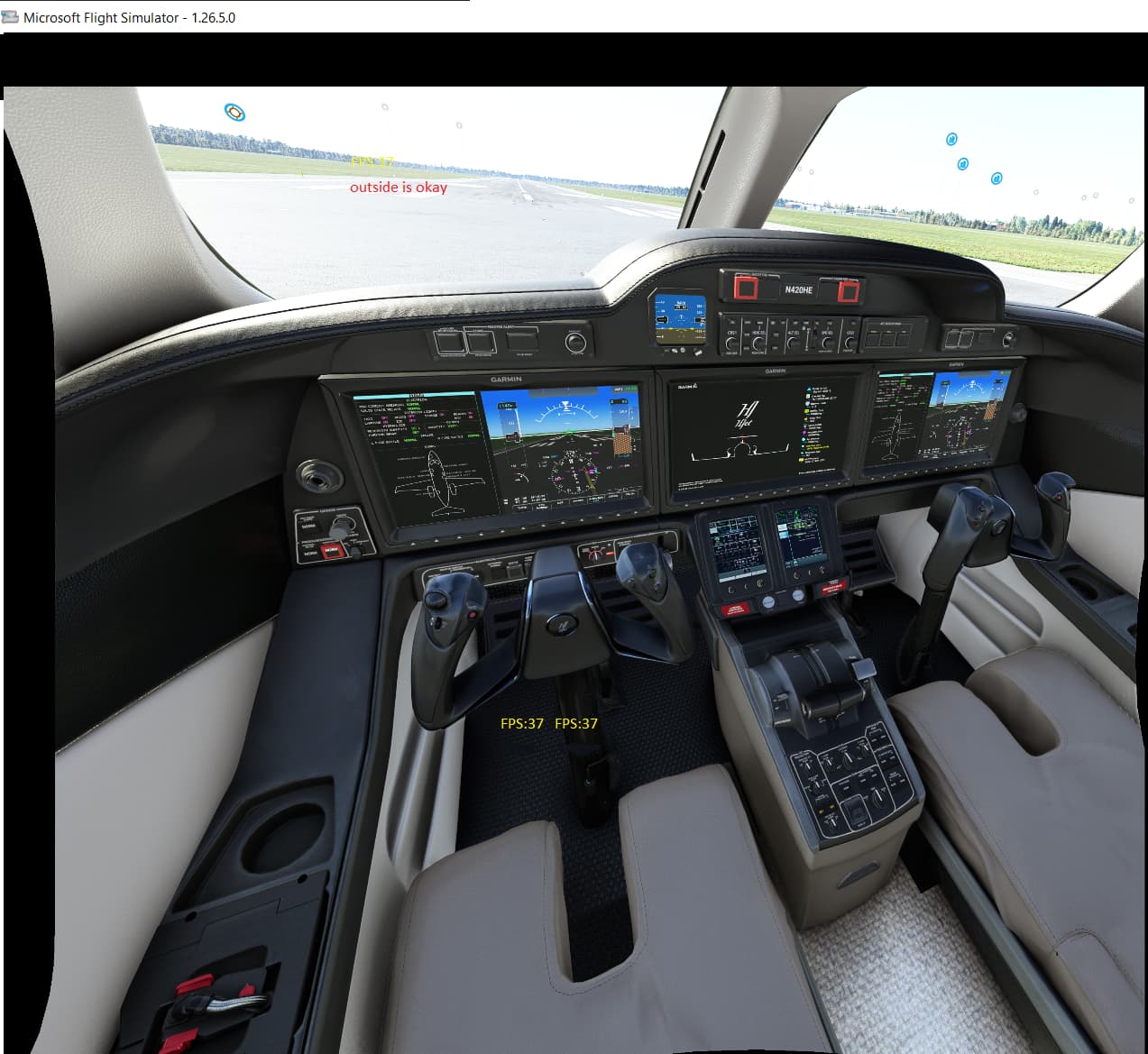 When I am looking out at the senery, I can only see one set of frame rates (eyes in focus) everything is okay. When I look around inside the cockpit.