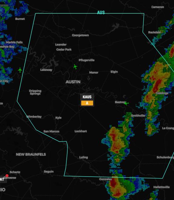 In your example, the Austin approach/departure controller would be the local ATC at Austin-Bergstrom International Airport (KAUS). They would be ATC for clearance, ground and tower all through one controller. Once you left the Austin approach controllers airspace then you would transfer to Unicom/122.80, since there is no center controller.