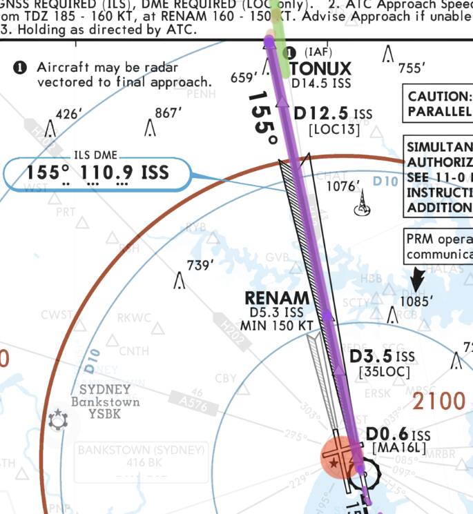 You should be tracking direct TONUX, not RENAM. TONUX is the Initial Approach Fix. RENAM is the absolute last moment you need to be on the approach, it’s not normal to go direct to it.
