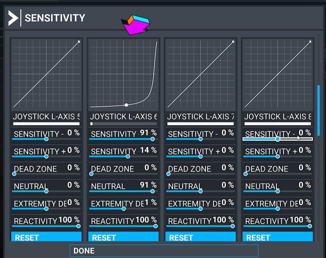Using the Turtle Beach VelocityOne controller, here is my sensitivity graph for the condition lever for the Kodiak. With this extreme profile, the high idle, low idle, and cut off, will be set near the 100%, 50%, and 0% settings.