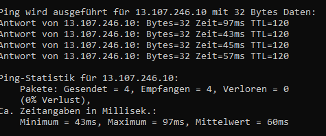 type TRACERT 13.107.246.10 then ENTER and show me the results