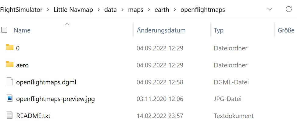 Extracted the full directory (not sub) into *… \ Little Navmap \ data \ maps \ earth *