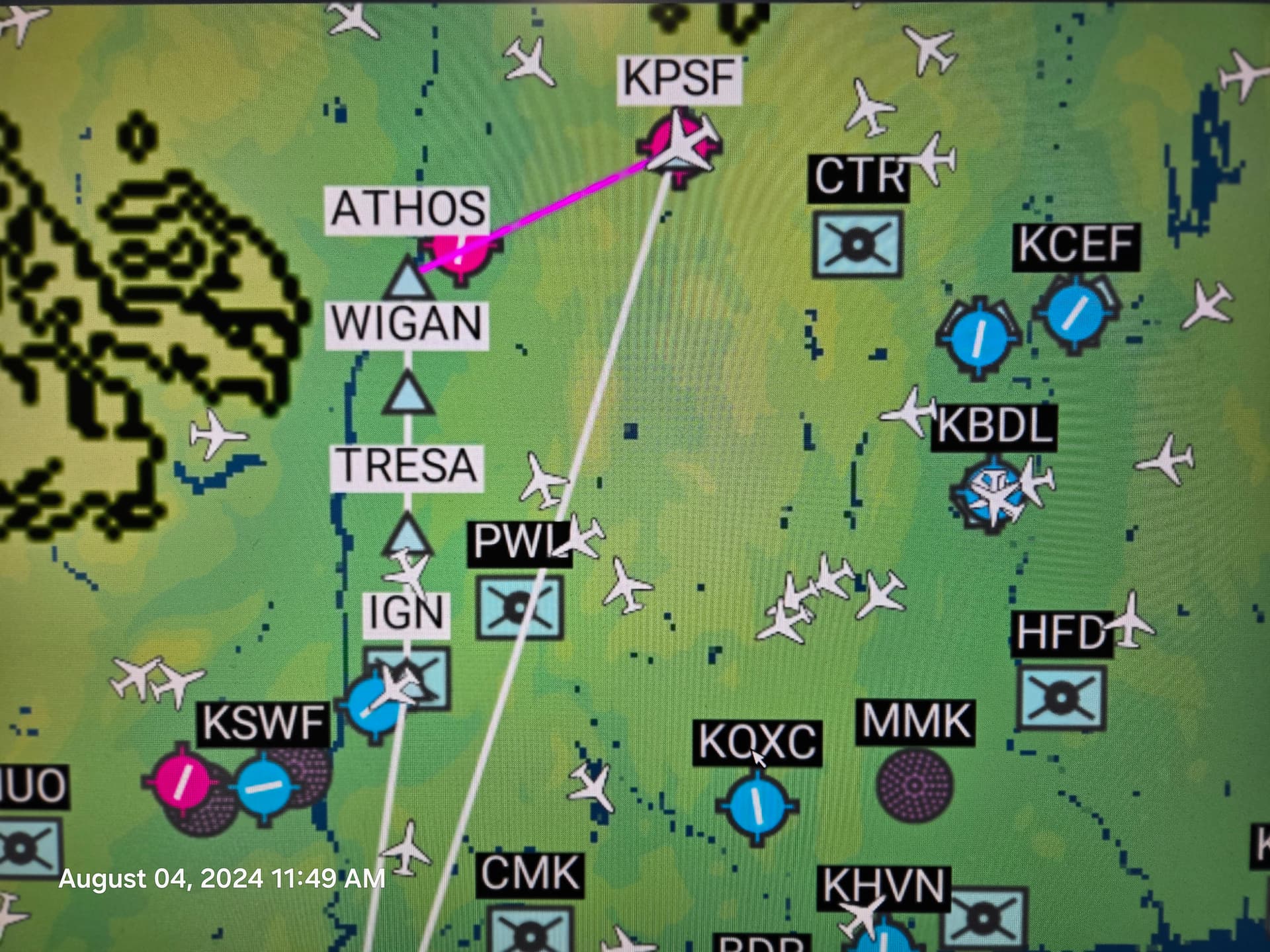 This is what i get when i do a flight plan in world maps, as of 4 months ago i did not get that white line that reverts back to my depature airport