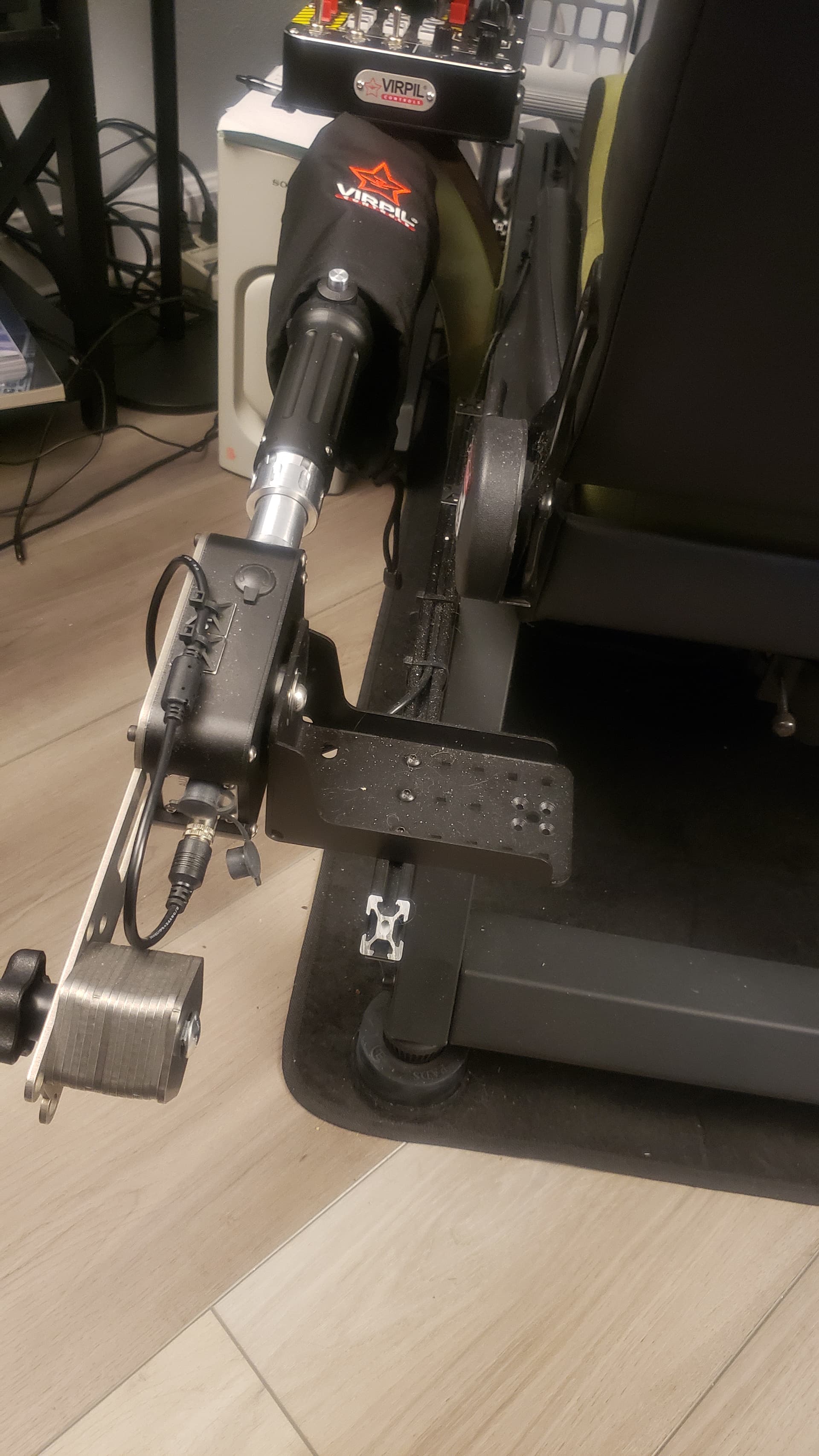 I think I’m going to leave the joystick mounted on the right - it feels fine there, and mounting it between my knees pushes me too far away from the desk, making it a long reach to the rudder pedals (I could move them, but I don’t want to have to do that) and also making it a long reach to the keyboard mouse, and other peripherals on the desk.  Again, a compromise that will be just fine.