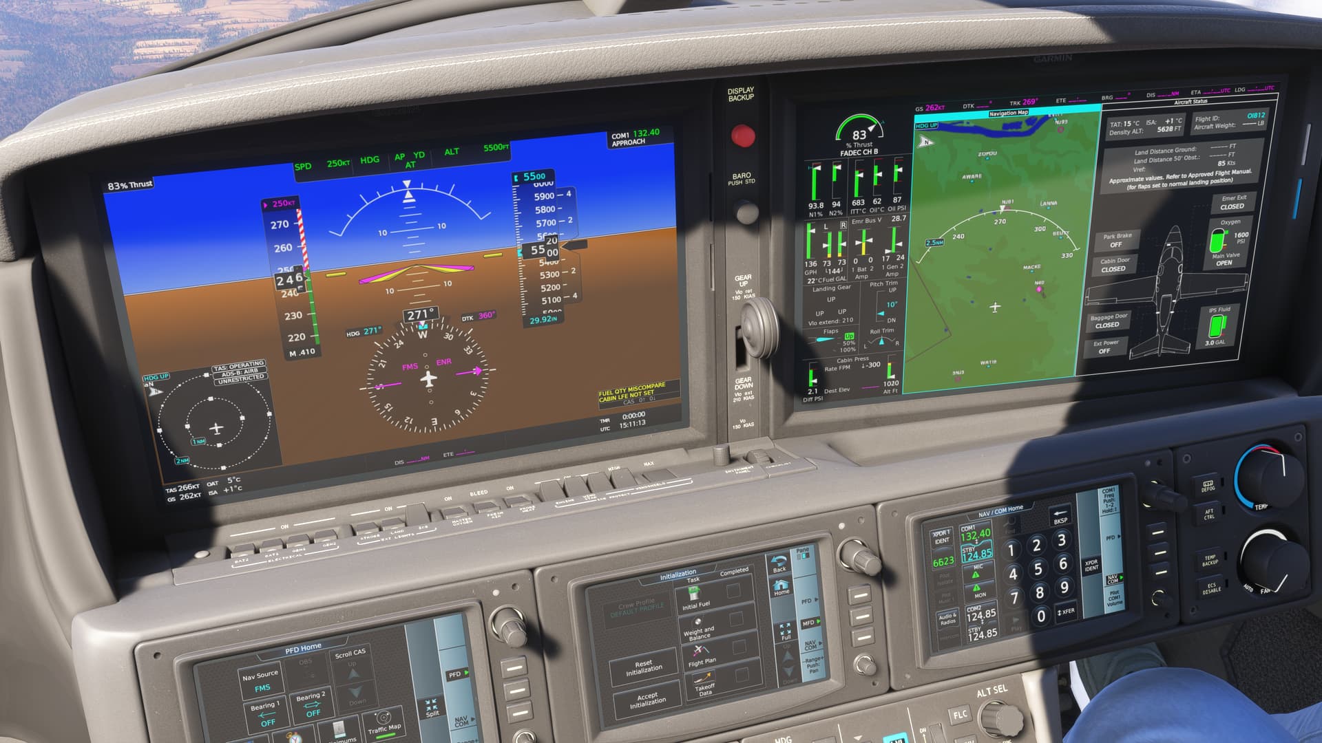 #2 you are going MACH .492 – that is VERY fast for that plane – you are NOT “only going 190 knots” that is INDICATED airspeed, not TRUE airspeed – very thin air = INDICATED will be much lower than actual. You need to look in the lower left corner for TAS, that will be something like 297KT – see mine: