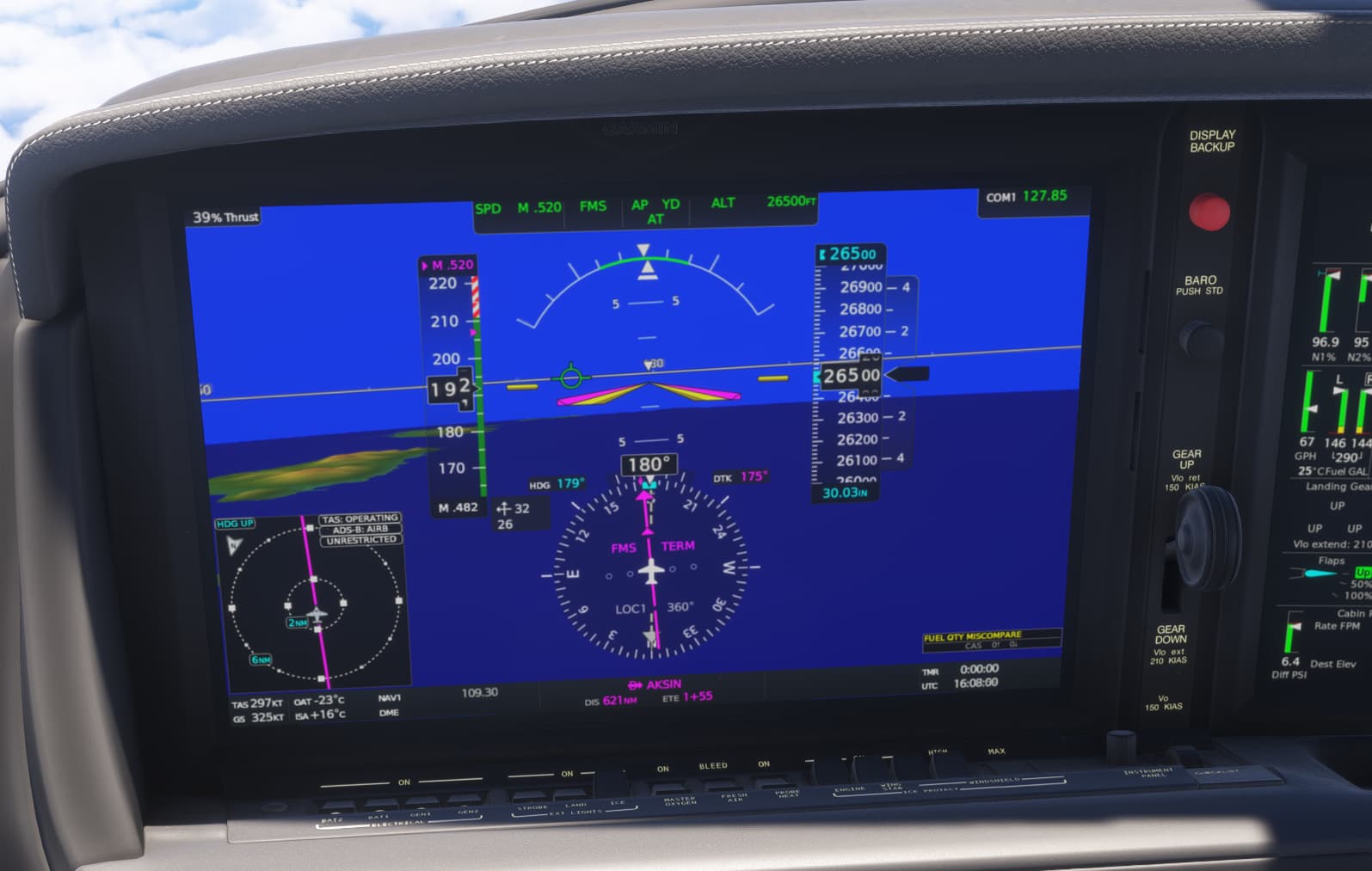 If you look back at my first image you will see 26500 in cyan at the top of the altitude tape. That’s because I dialed in an altitude.