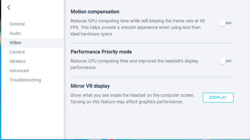 In Vive Console - do not use motion compensation (leads to screen tearing). Also try and avoid using Performance Priority Mode (it smooths but leads to fuzzy virtually unreadable EFIS and text).