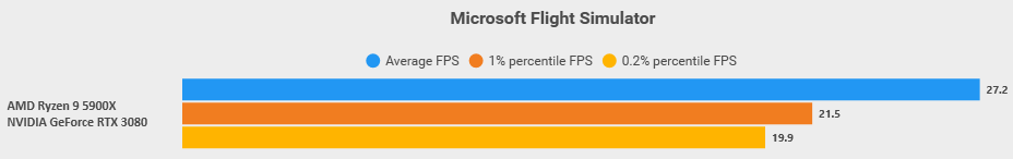 Your observations mirror mine exactly. I’ve got an RTX3080 running with a slightly lesser CPU (5600X) but I get pretty much identical performance averaging around 28FPS. OXR at 70% TAA with 100% sim render scale, medium settings elsewhere. I sometimes put clouds up to high or even ultra if I think I can get away with it but they’re one of the biggest FPS hitters as far as I can see.