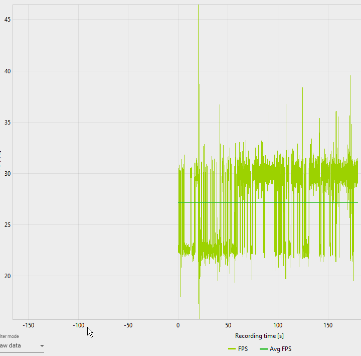 FPS graph also shows framerates much higher than 32 very often. I think that when it goes below 22.5 FPS (MR threshold) is when I see microstutters… Also one idea that I just had from looking at this graph is that a lot of FPS are floating around 30, which is the second MR threshold. Maybe I need to load it more so it never reaches that and doesn’t switch back and forth on the 22.5/30FPS MR modes? Or cap the frames around the average 28FPS?