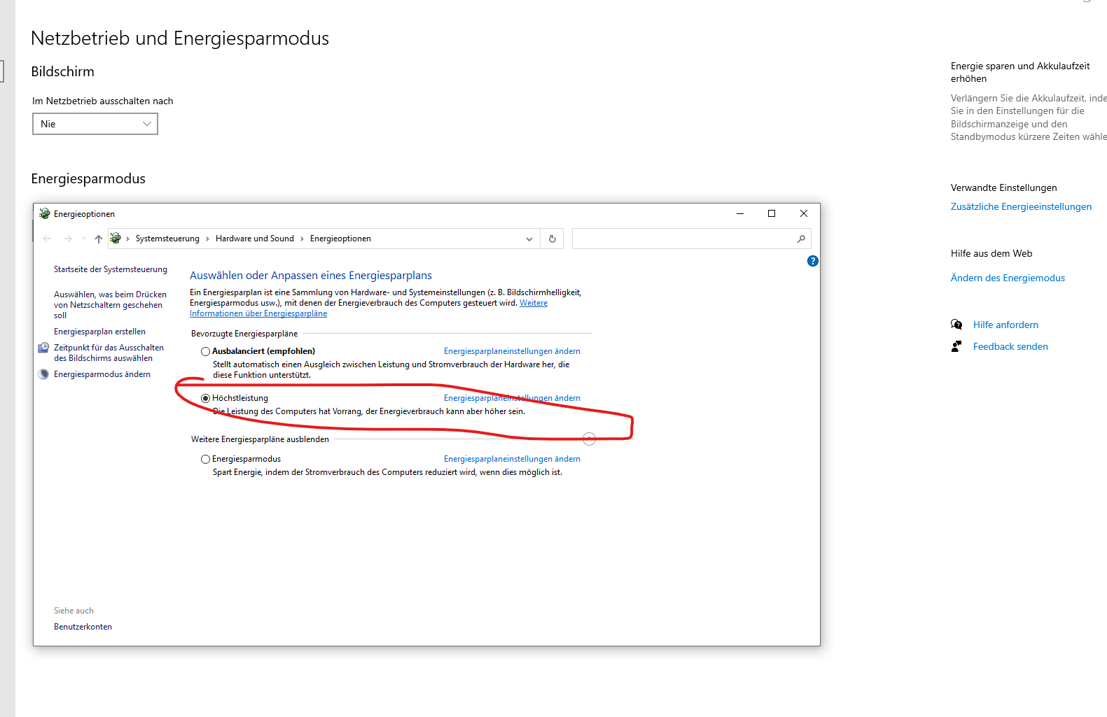 Have also this Graphic settings. Genereally all Power saving options in Windows should be set to off - but than you might use more energie and have higher costs