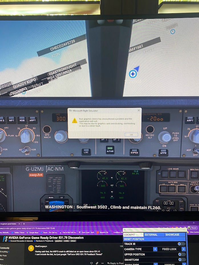 Directly after Nvidia 531.79 update, I get this FS Error and FS Crashes/Freezes.