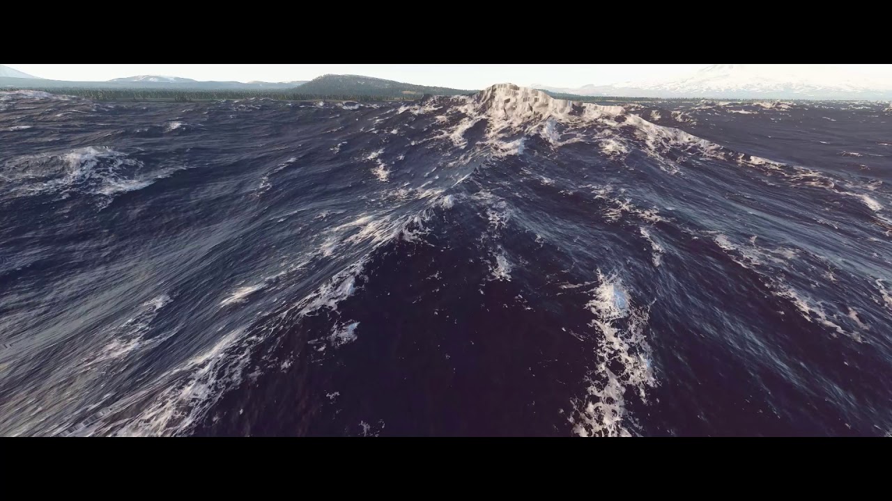 And since 1.9.3.0 it looks more like this, breaking waves with construction grids visible, matte water effect with no depth to it between wave crests etc. (this is from 1.9.5.0):