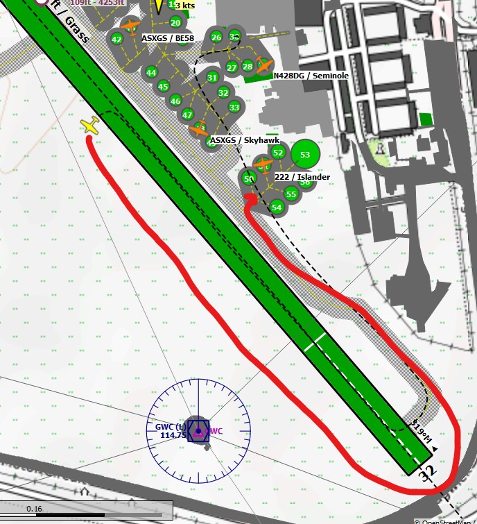 Hobanagerik’s taxi path ribbon led him onto the entry point of runway 24 and triggered the next objective. This tells me that perhaps the Global Map and the taxi ribbons dont really correlate.