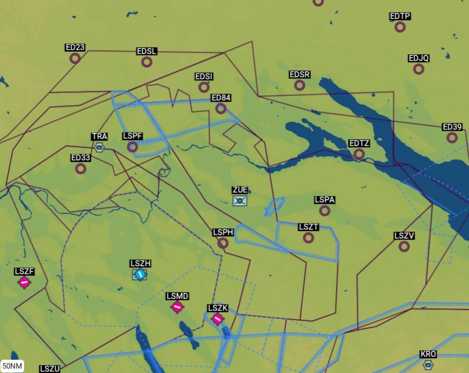 In that first pic, the blue hashed lines depict a glider area. So you’ve got a designated glider area within a class C. Those are also different blocks of altitude, but I assume, much like MOAs and restricted areas in the US, also might be activated in various configurations at different times, depending on need.