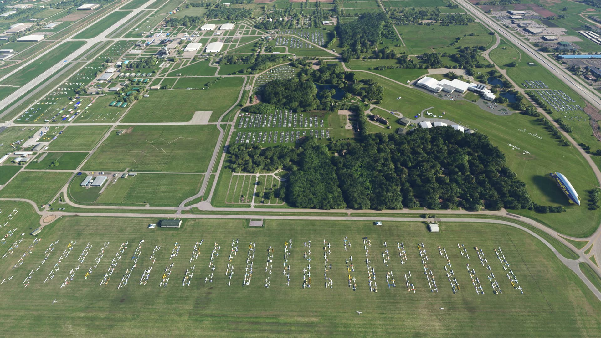 KOSH is Wittman Regional in Oshkosh, Wisconsin. There are multiple add-on sceneries available for this on flightsim.to, but I highly recommend doing the SimVenture fly-in a week or two before the actual AirVenture in July. That’s when PilotEdge makes their scenery available for this airport along with hosting a massive multiplayer fly-in with the real Oshkosh air traffic controllers.