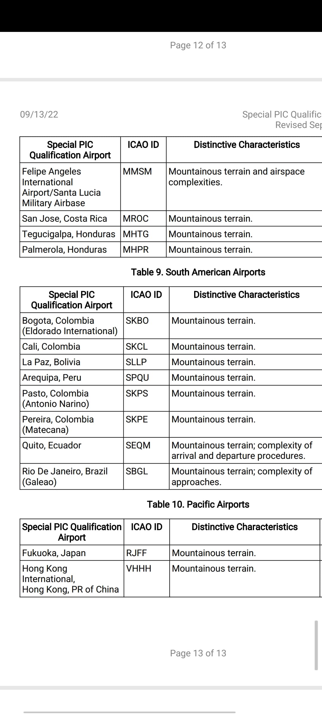 I found a list about Airports that require a “Special Pilot in command Qualification”