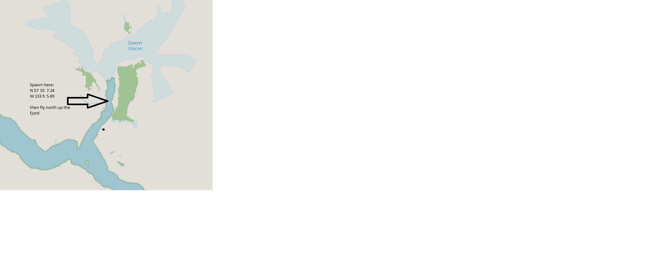 I’ve put the coordinates in for you here to see exactly where to spawn your aircraft. Just fly north up the fjord and there’s the glacier. Can’t miss it!