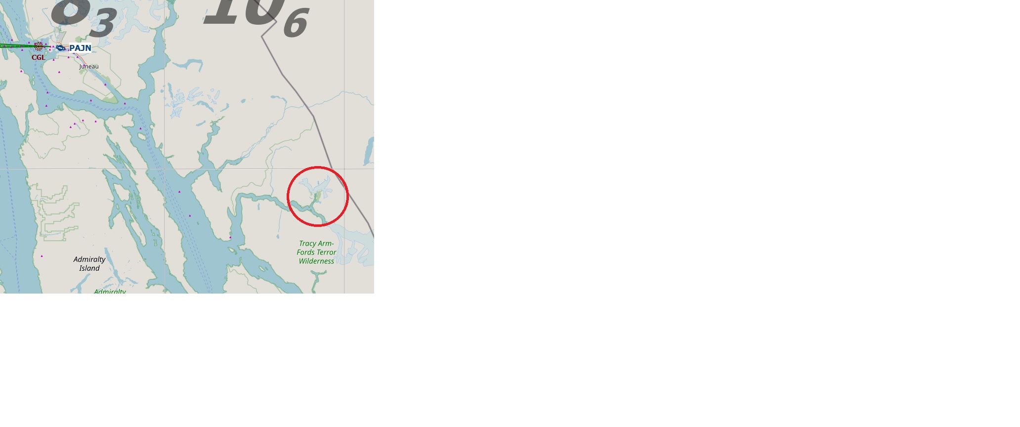 Sorry for not replying sooner. Search for PAJN and southeast of that you’ll see Tracy Arm, Fords Terror Wilderness and north of that is Sawyer Glacier and South Sawyer Glacier.