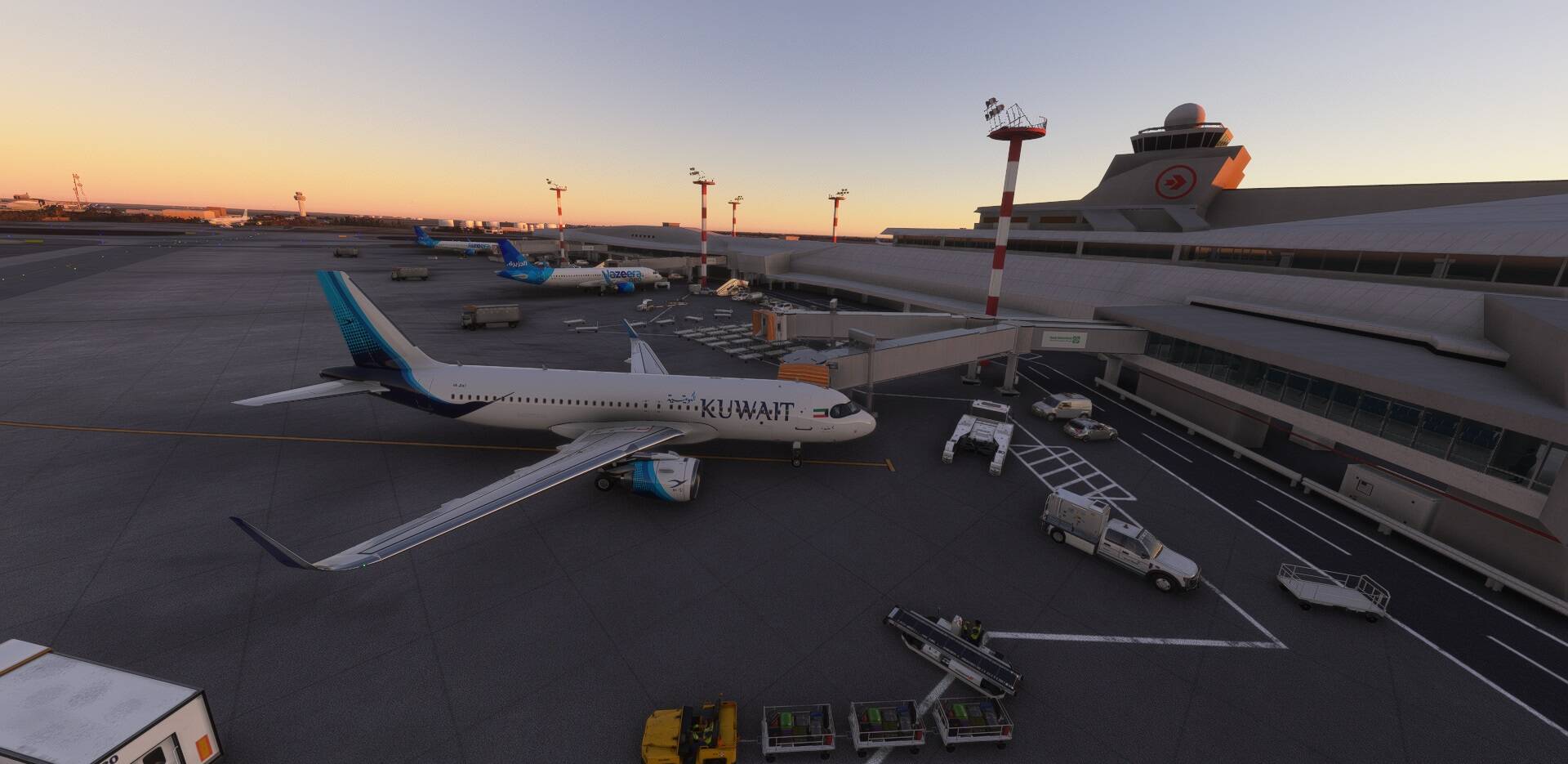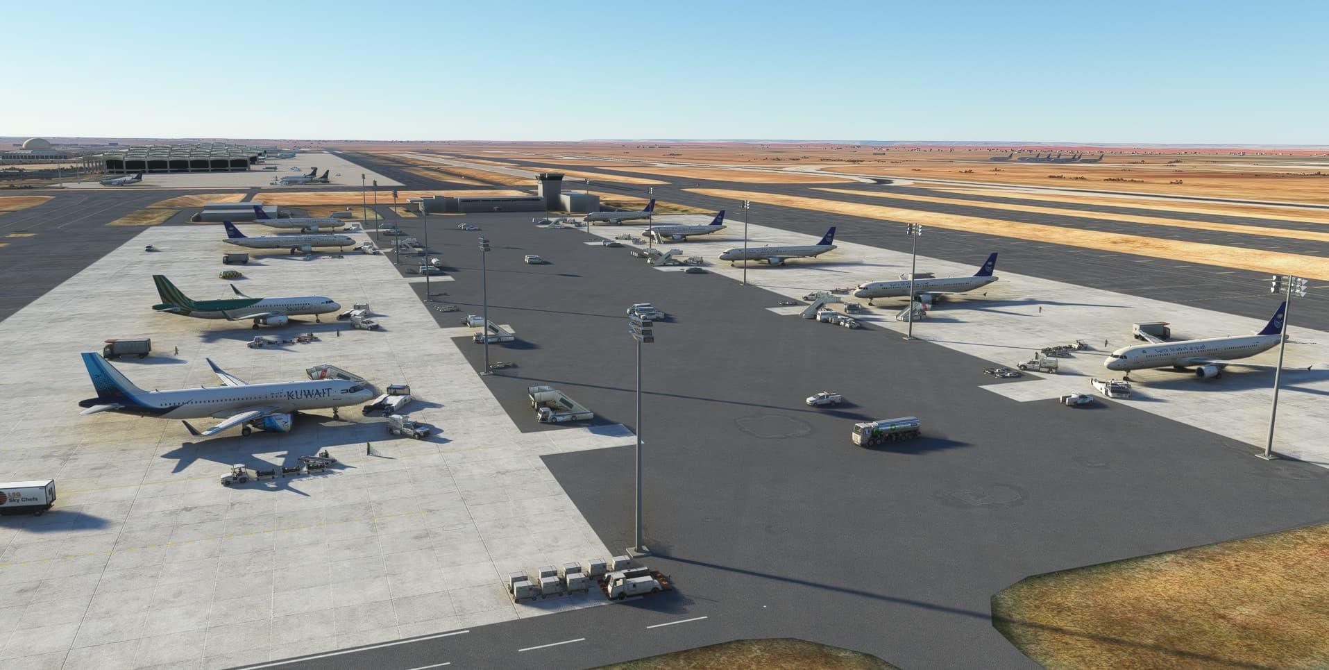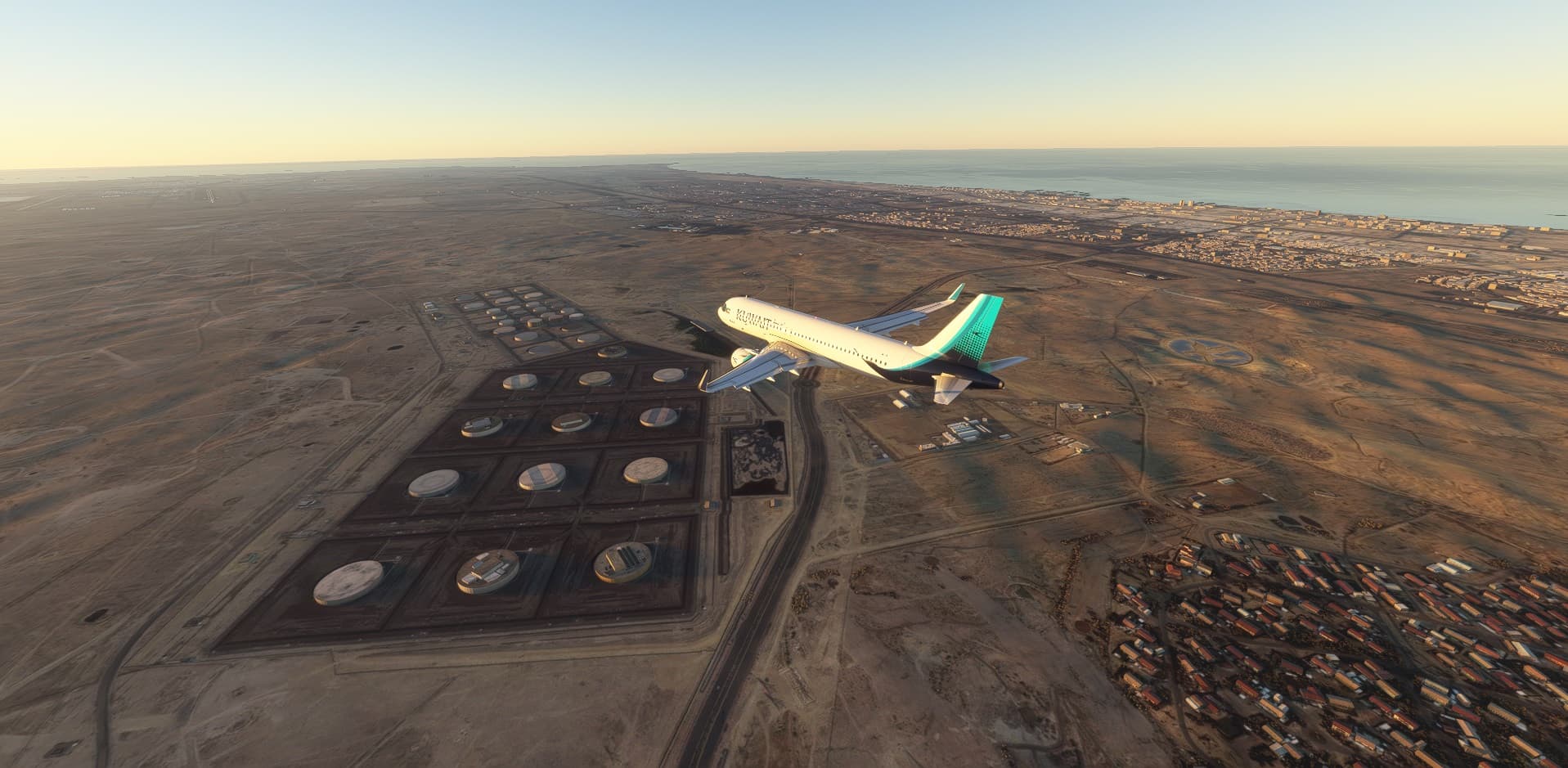 Short flight from OERK-Riyadh (by aboodilatif) to OKBK-Kuwait ( by YAG). Both addons at flightsim.to. Kuwaiti livery by Raptorr111.