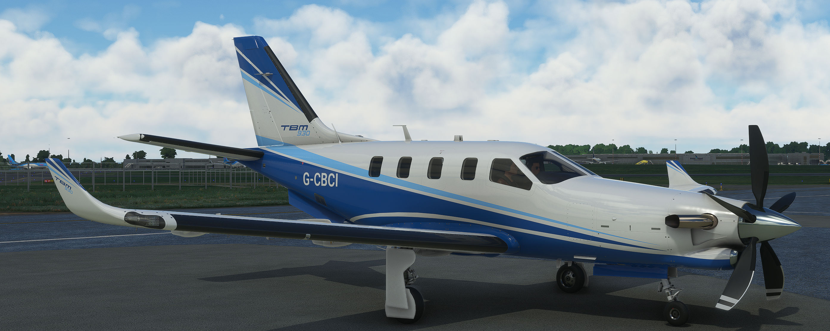 Flew from EHAM to EGGD. Spent most of the afternoon repainting my TBM with my corporate colours and getting the tail number to show. Its based on the default Asobo livery but looks nice I think.