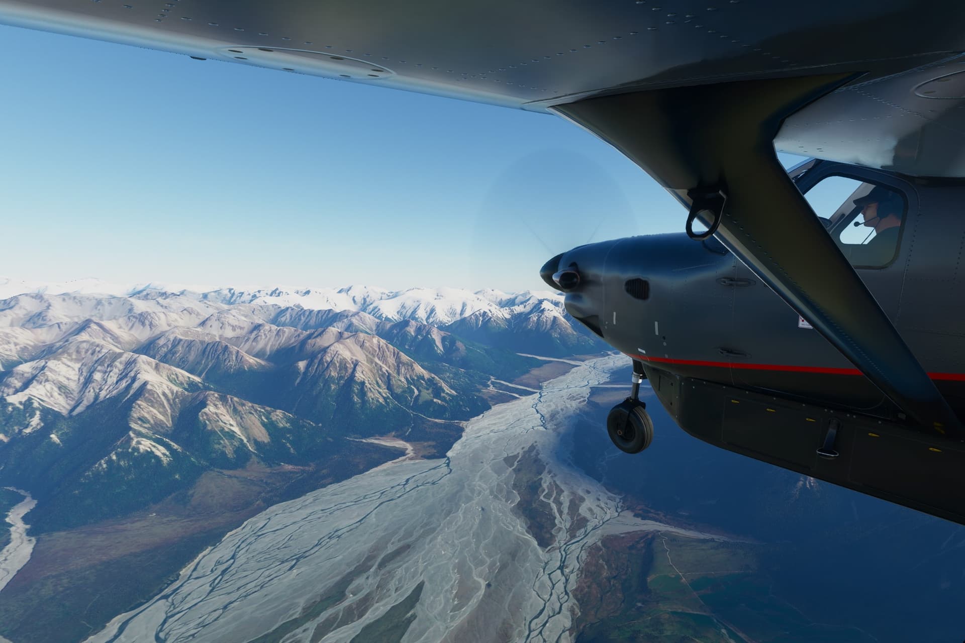 Wilberforce River and the snow-covered mountains like Mt. Williams and Urquhart Peak: