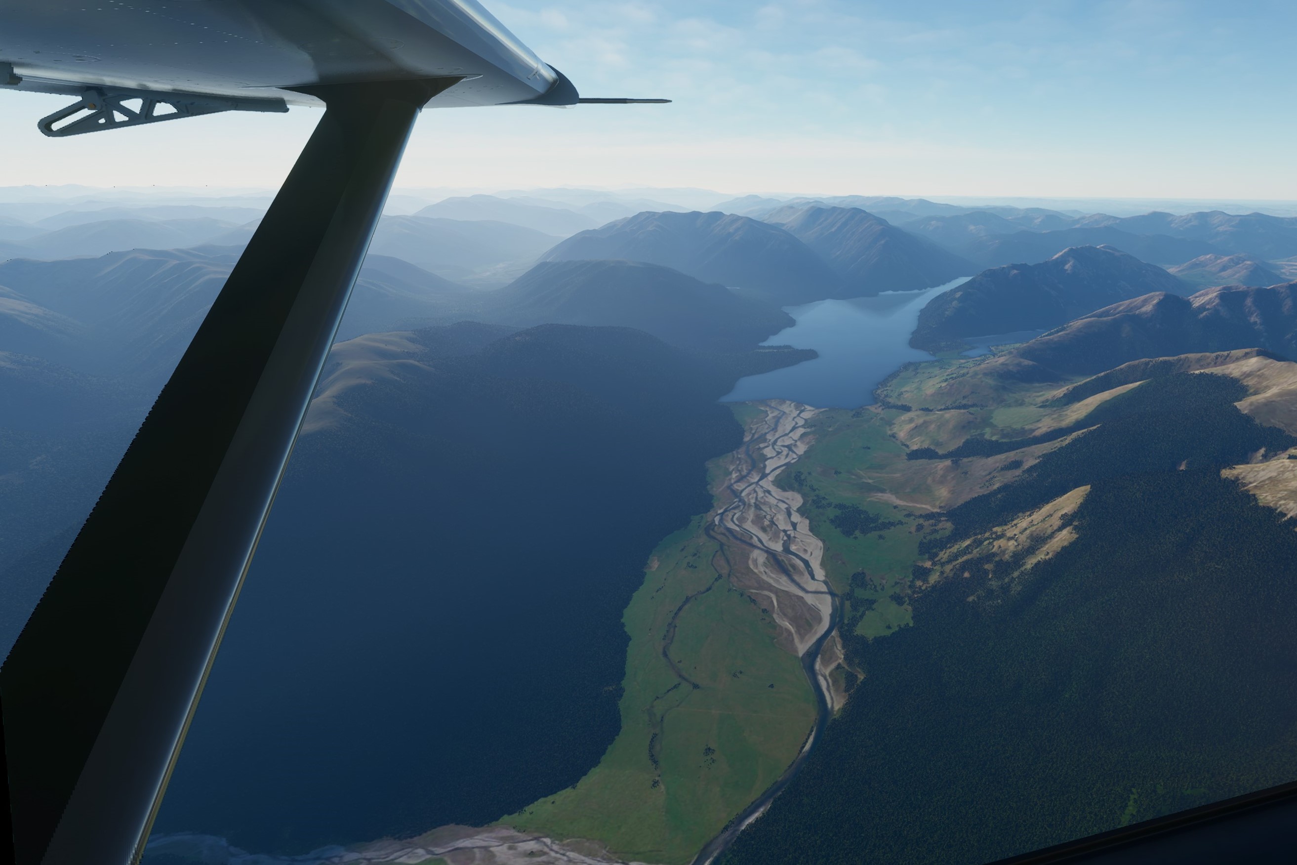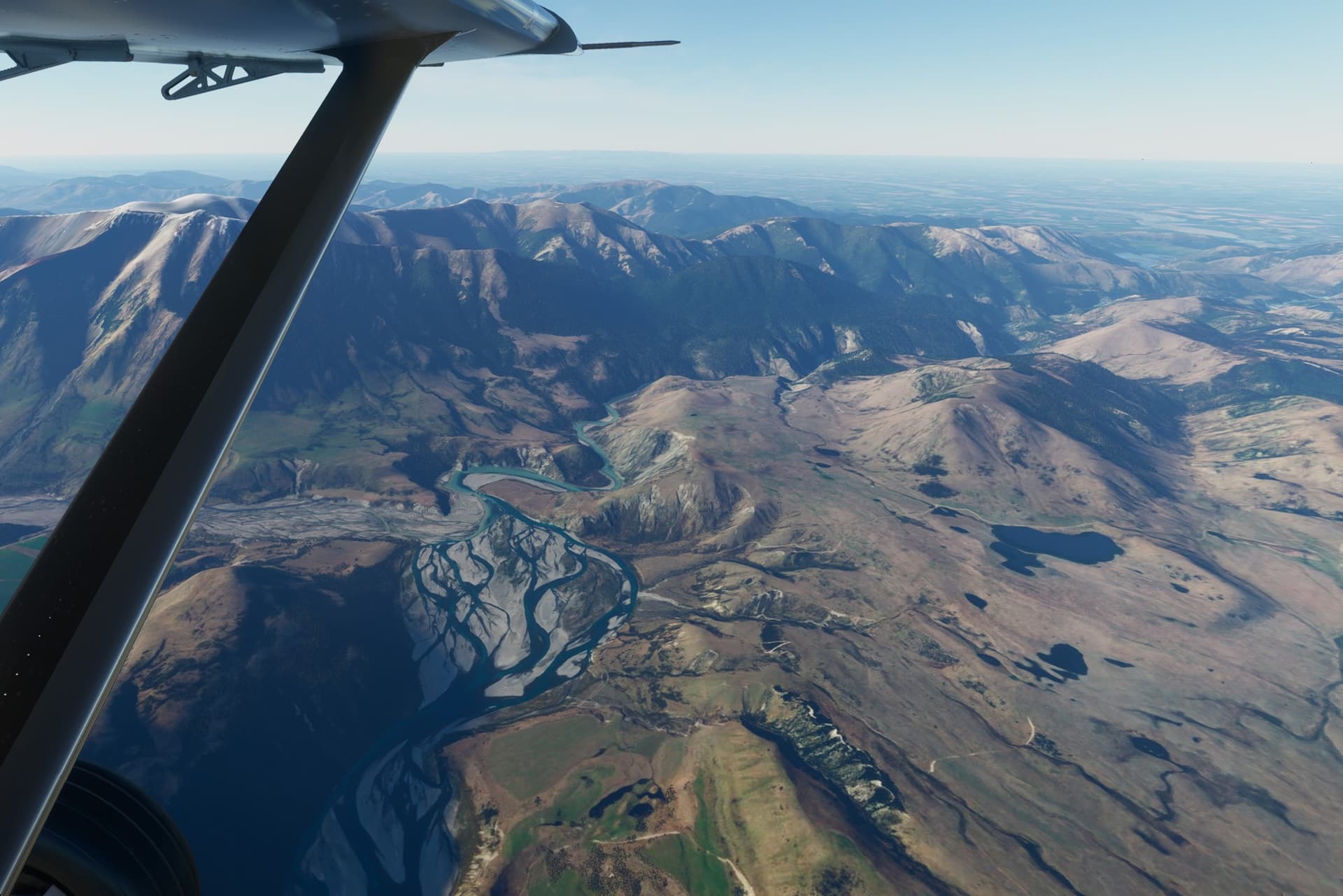 On my way to Lake Coleridge. Chest Peak and the Waimakariri River are visible under the left wing: