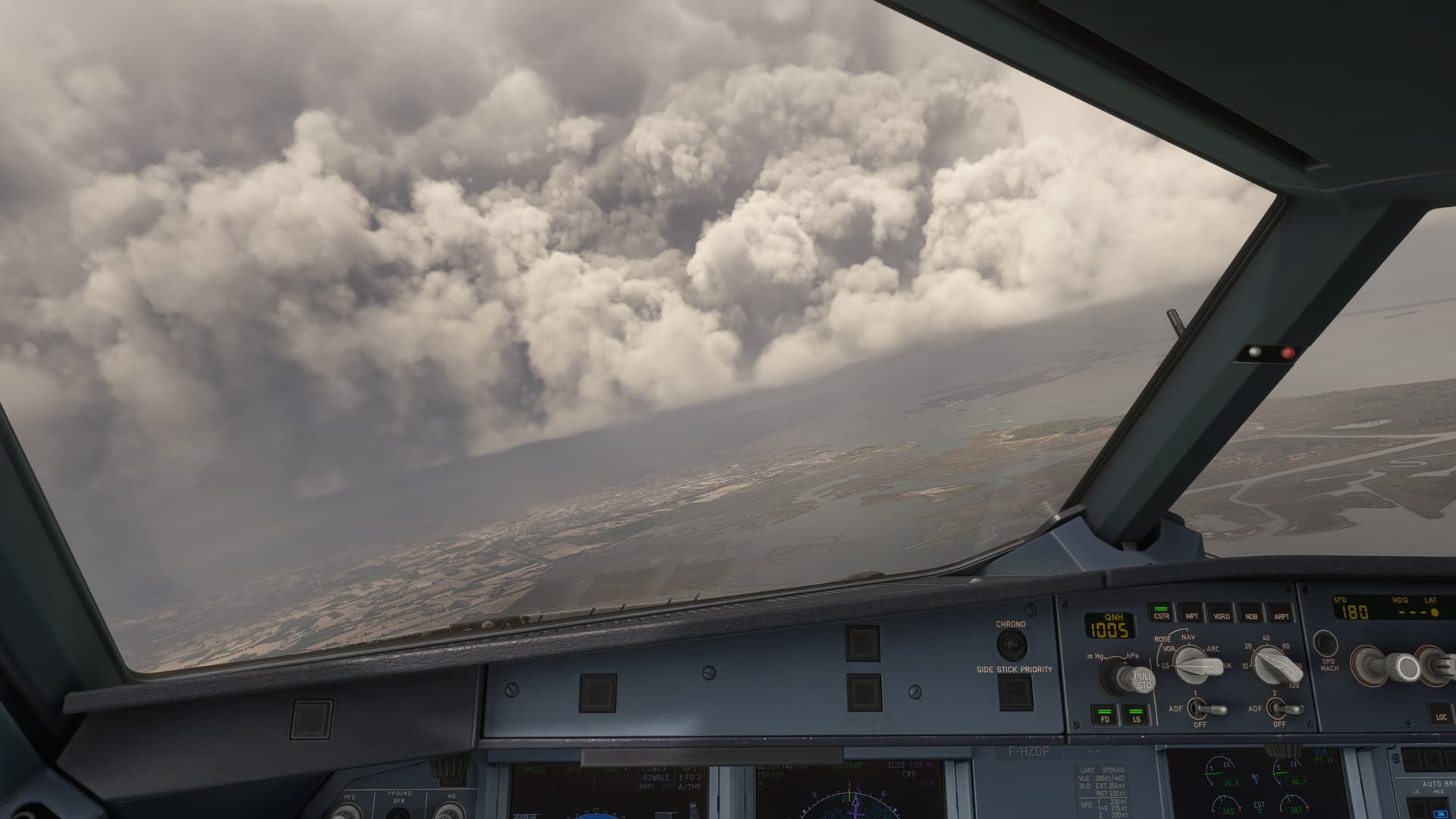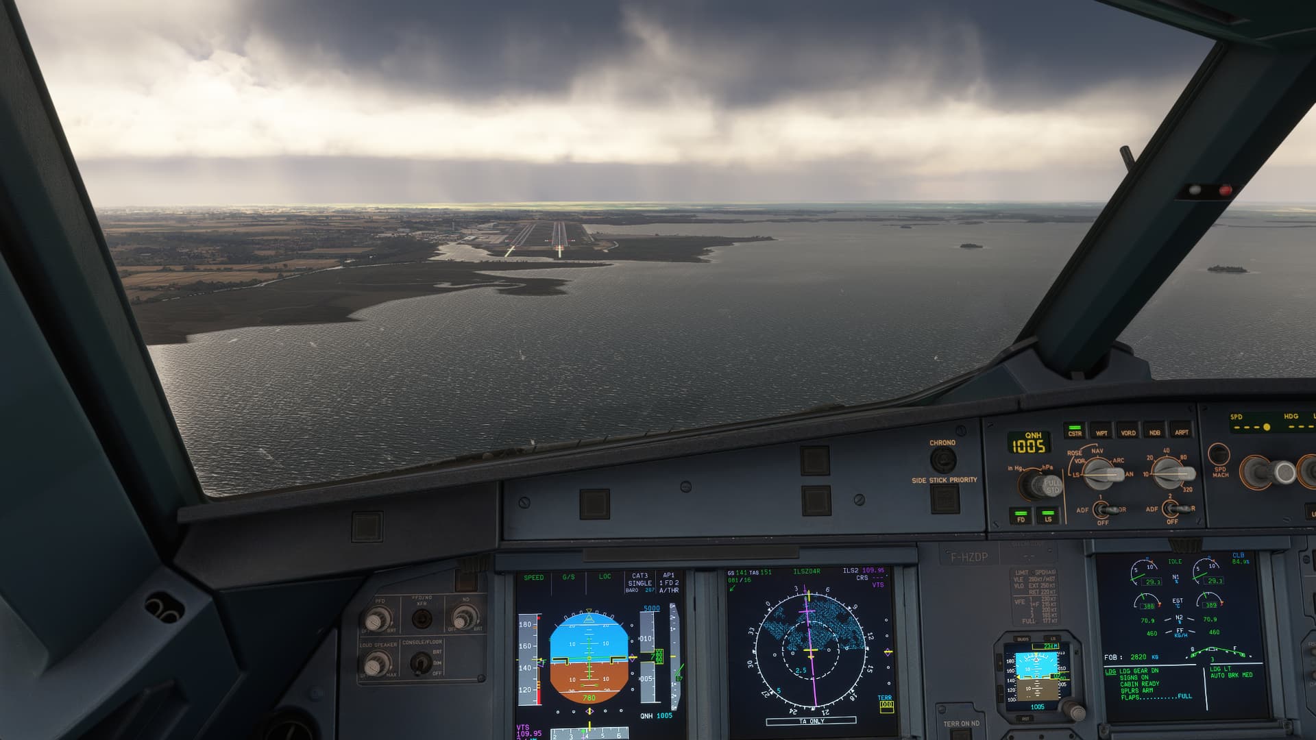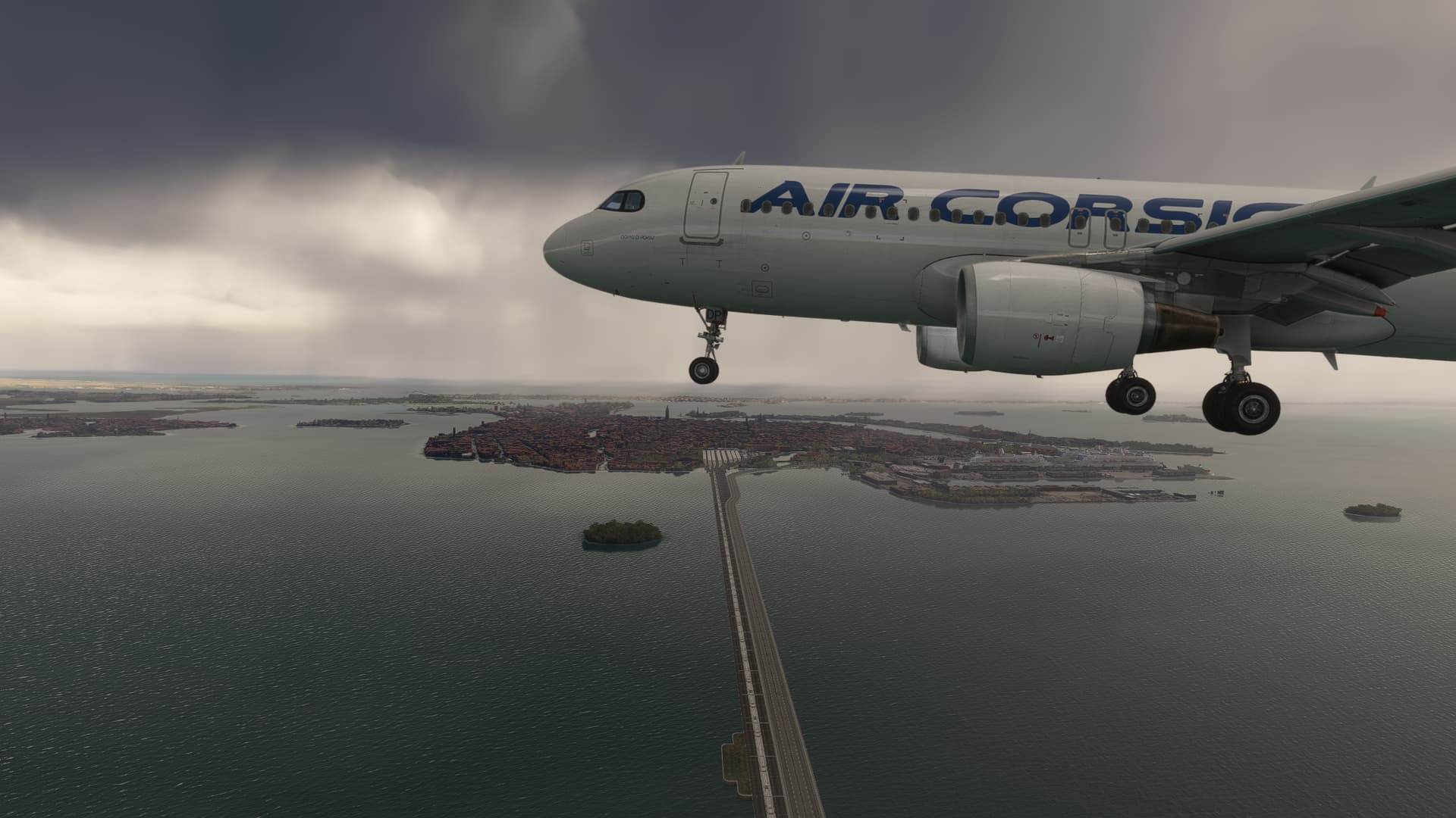 There was some pretty inclement weather making its way towards Venice, so I put the aircraft down on the runway after the third approach, not long after a master caution for low fuel had popped up. Great fun to be able to do this after a few years flying the FBW and not being able to sequence the missed approach!