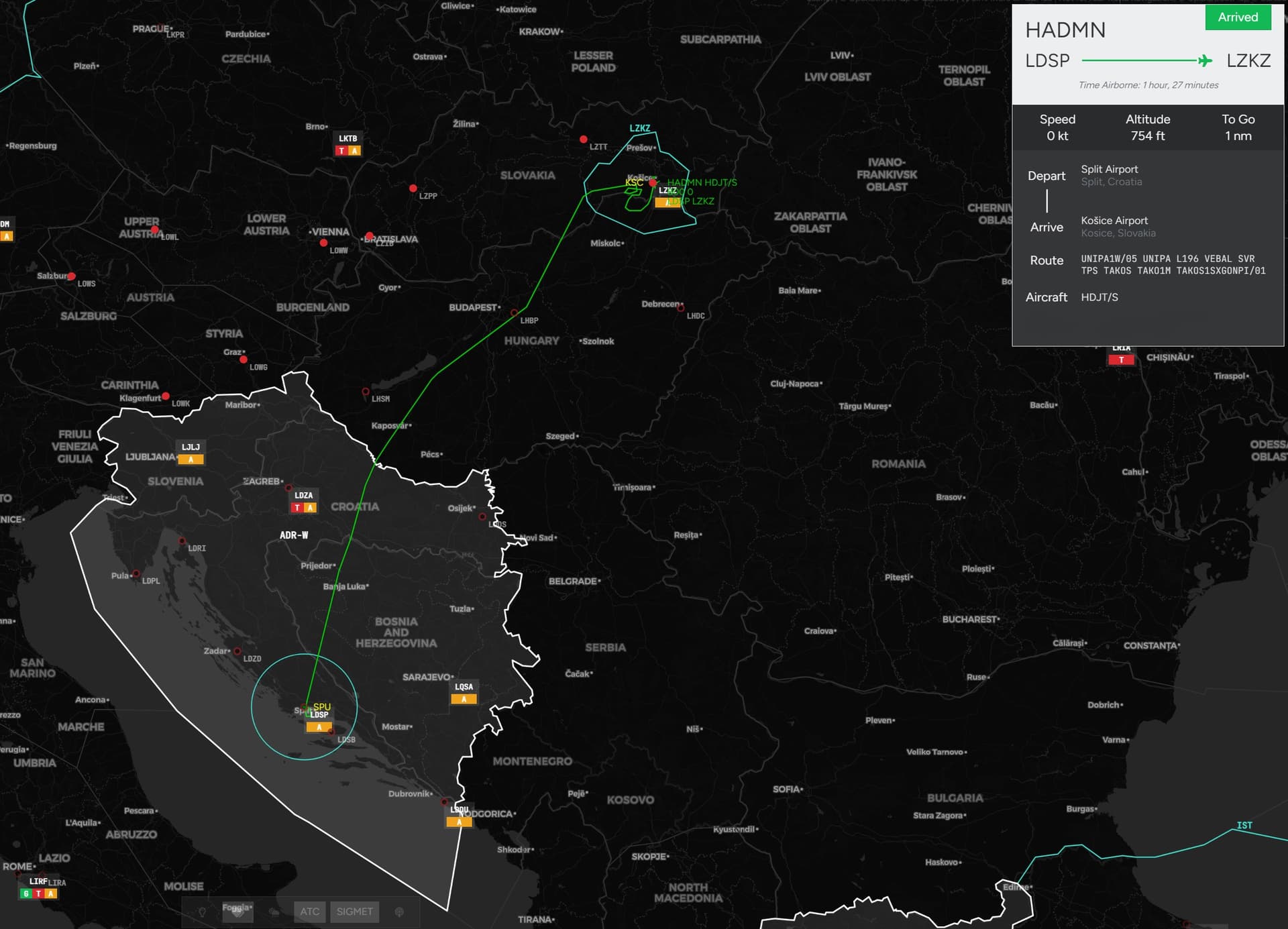 Split Kastela (LDSP) to Kosice (LZKZ) in the HondaJet: