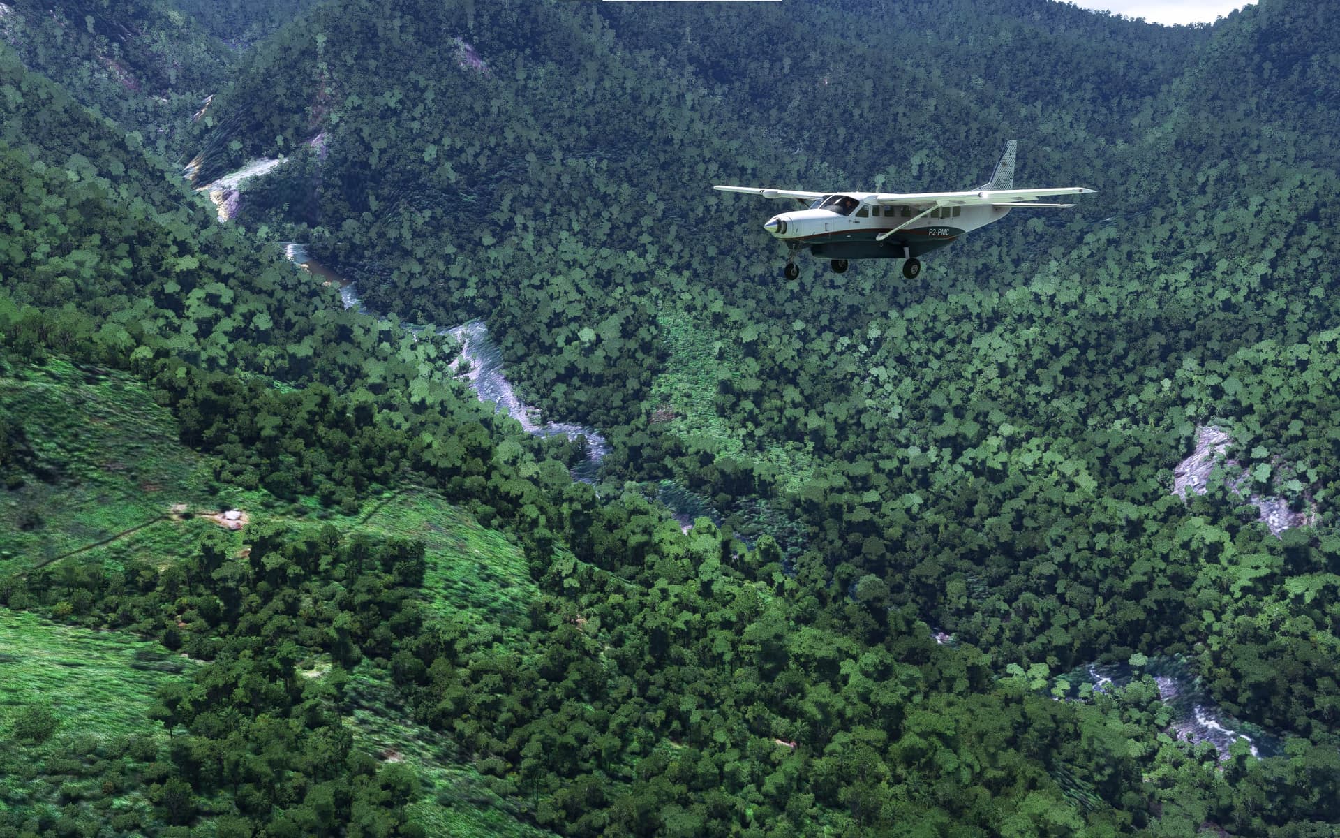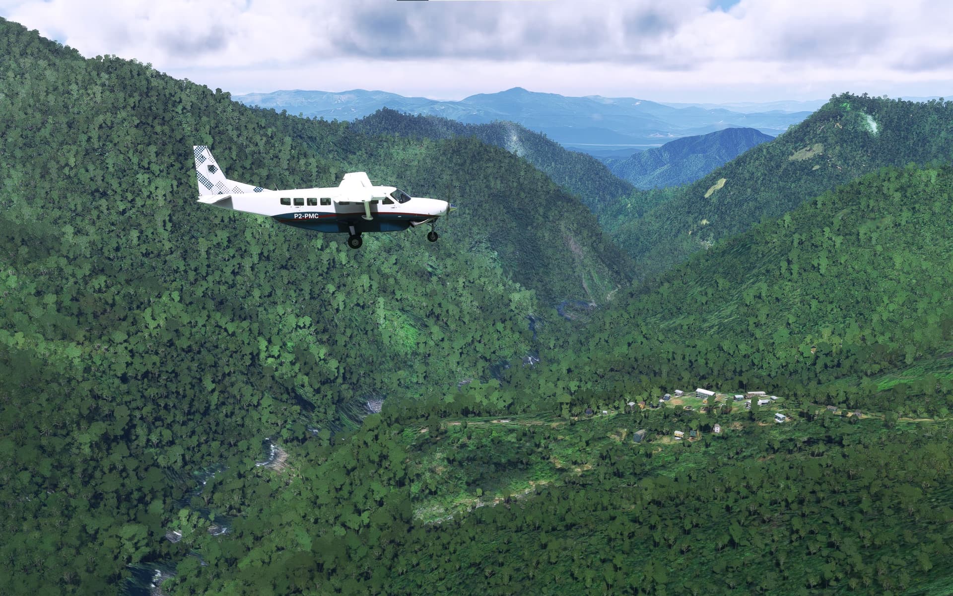 I climbed all of the way and made it but without a lot of clearance! Would have been on the terrifying side IRL think. I’m not sure there was an escape route either, I wouldn’t like to try a U-turn in this narrow valley in the jet.