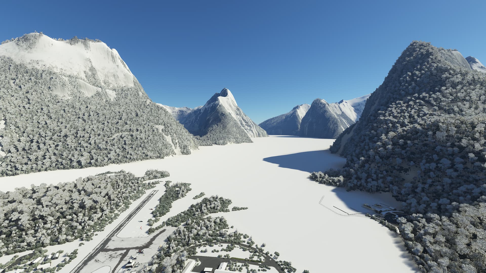 First up there’s a nicely modelled small marina at NZMF, I’d come back with my boat if the ice would melt, but having just had summer and with 20C outside it doesn’t look like this glacier will ever melt in the sim. Maybe I need to wait for an ice yacht in the marketplace.