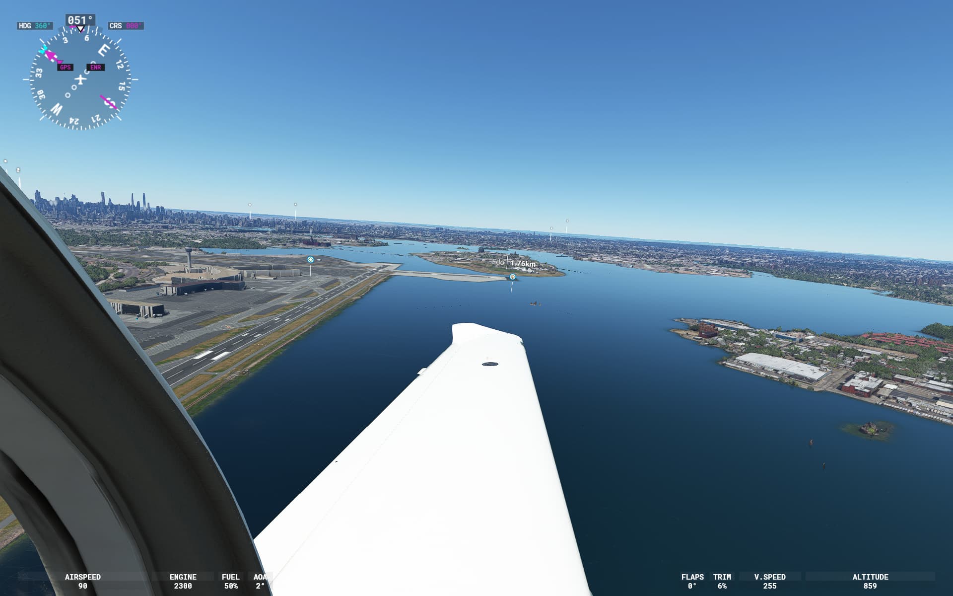 I tried a flight around Anchorage Alaska and one from JFK to LGA, via a number of waypoints around NYC, flying the Edgly Optica so I could do some sightseeing.