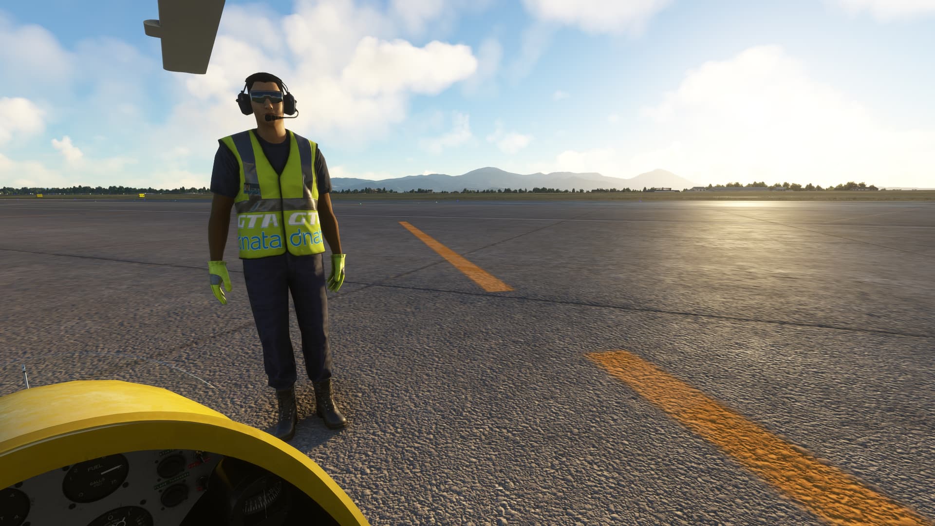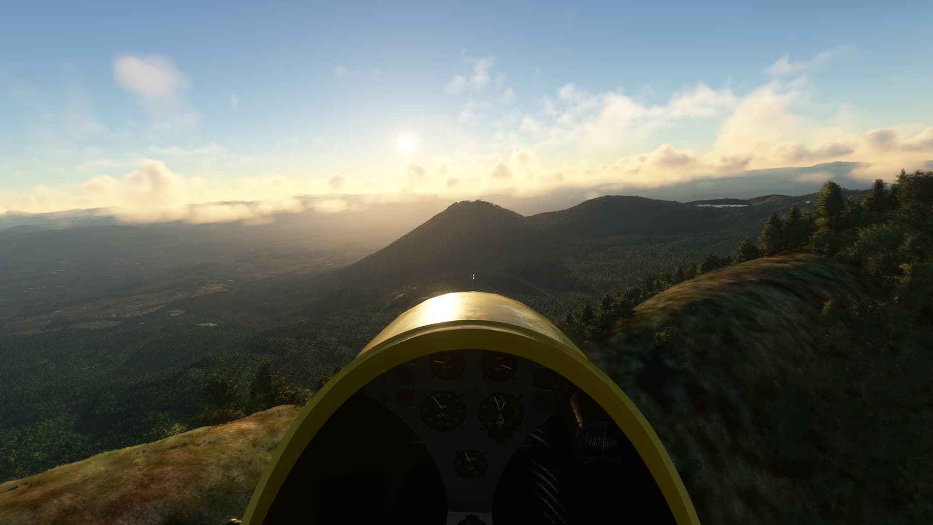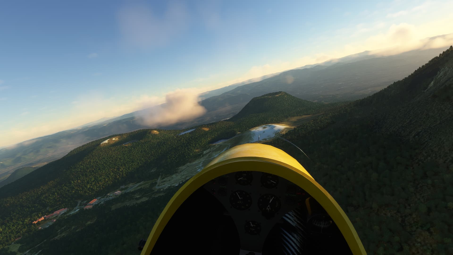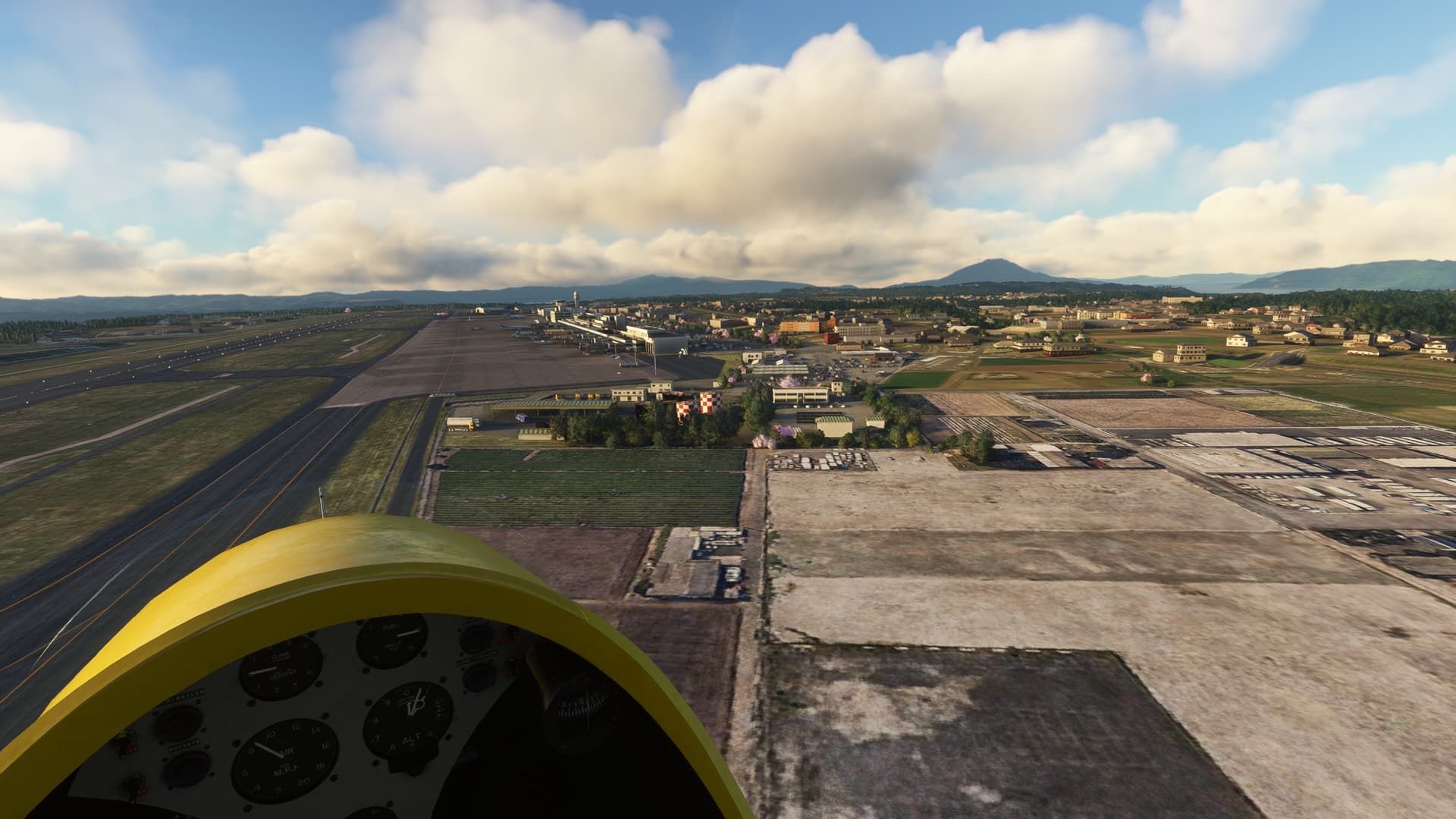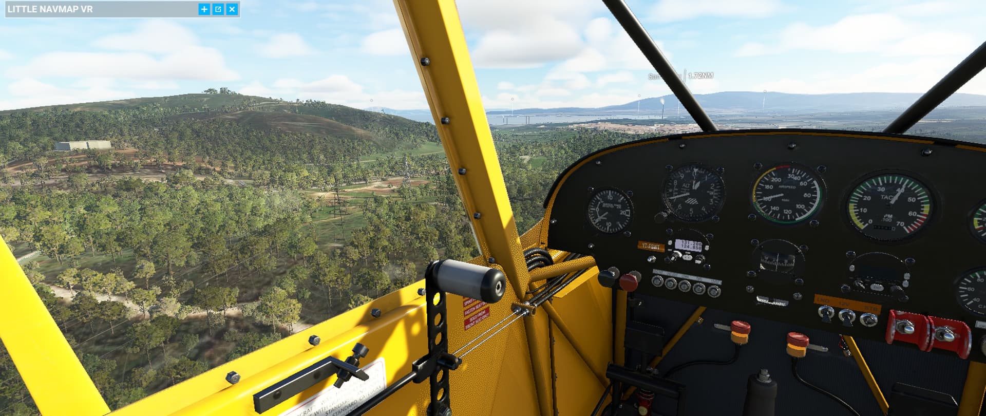 Had a panoramic flight by Gibraltar (LXGB) on a Savage Cub and tested a new weather preset. It was a short flight, only 21 minutes, with a very, very short take-off (I had not fully centered the elevator trim). It’s a beautiful place, with an impressive massif just south of the airport, and I doubt that there is something like a left pattern for runway 27, which the air traffic control asked me to do. ![]()