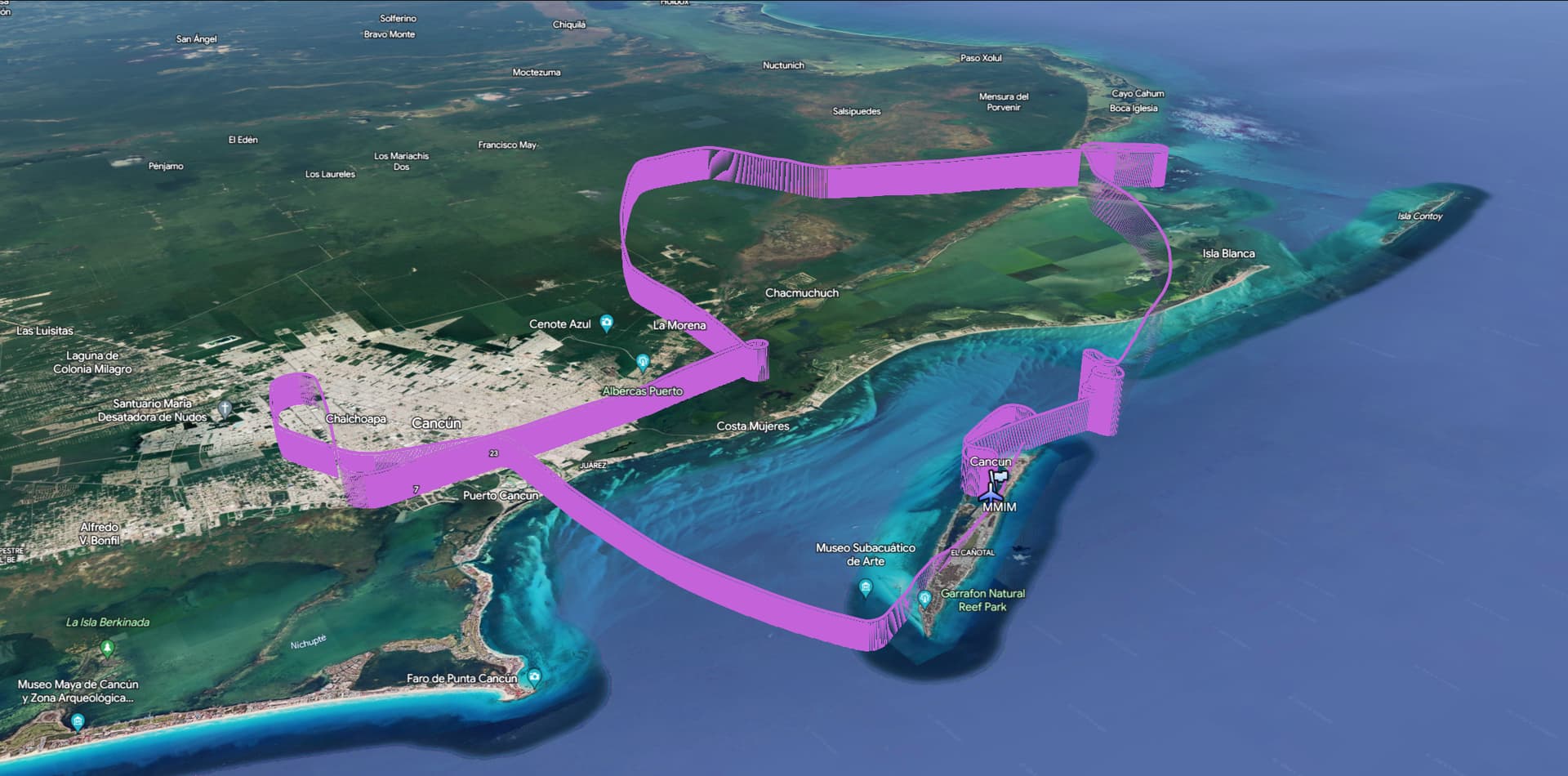 Today, after being grounded for a week, I flew over the wonderful waters off Cancun (Mexico), based at the Women Island Airport (MMIM).